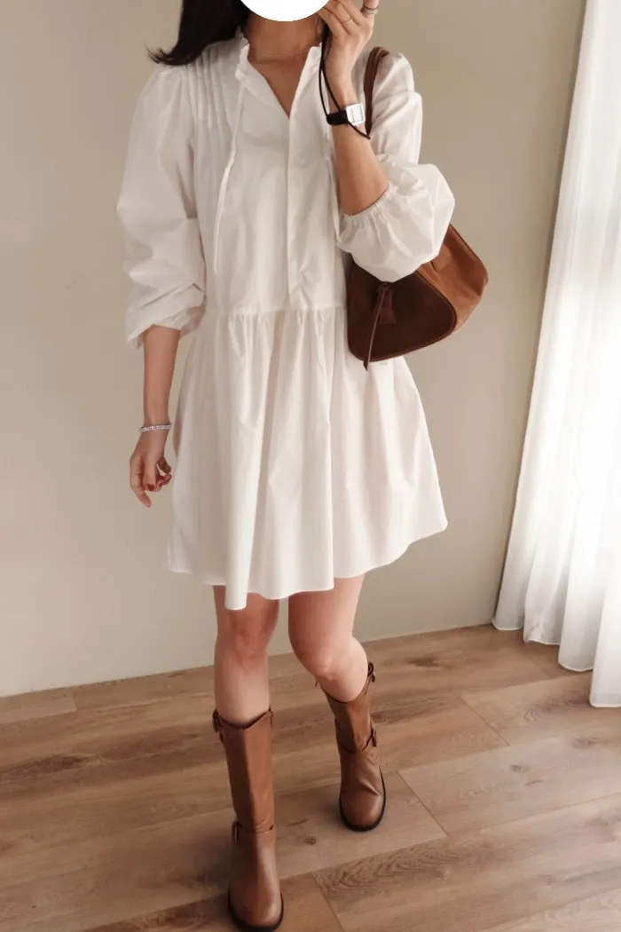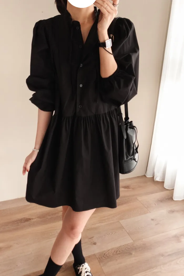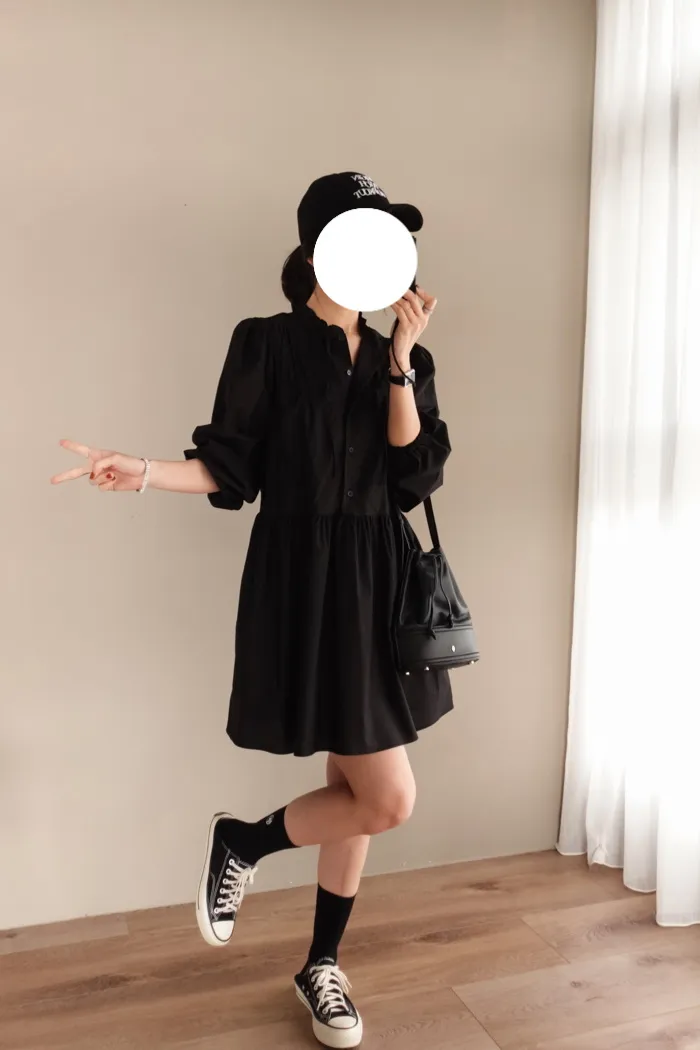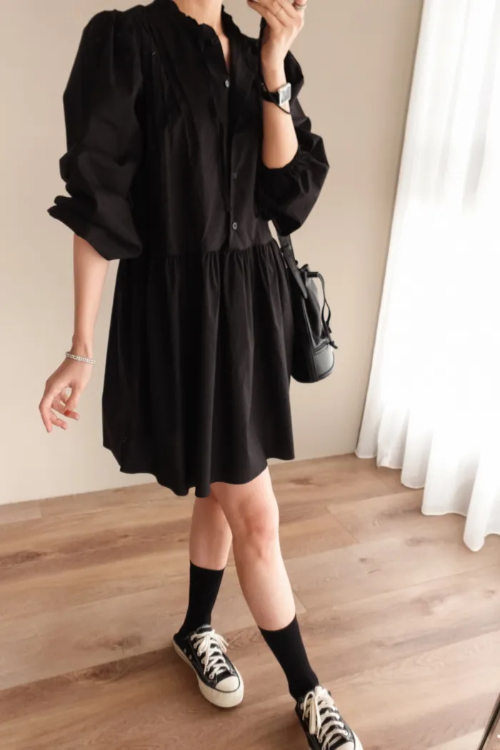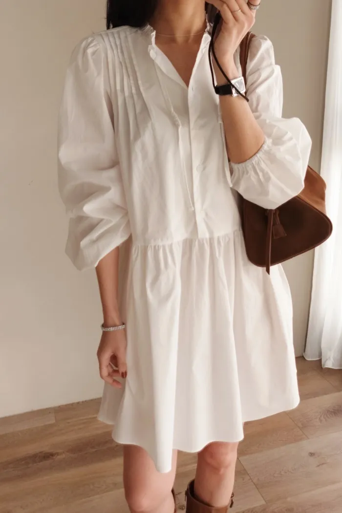 有鬆度的袖管不僅視覺上讓洋裝線條更豐富