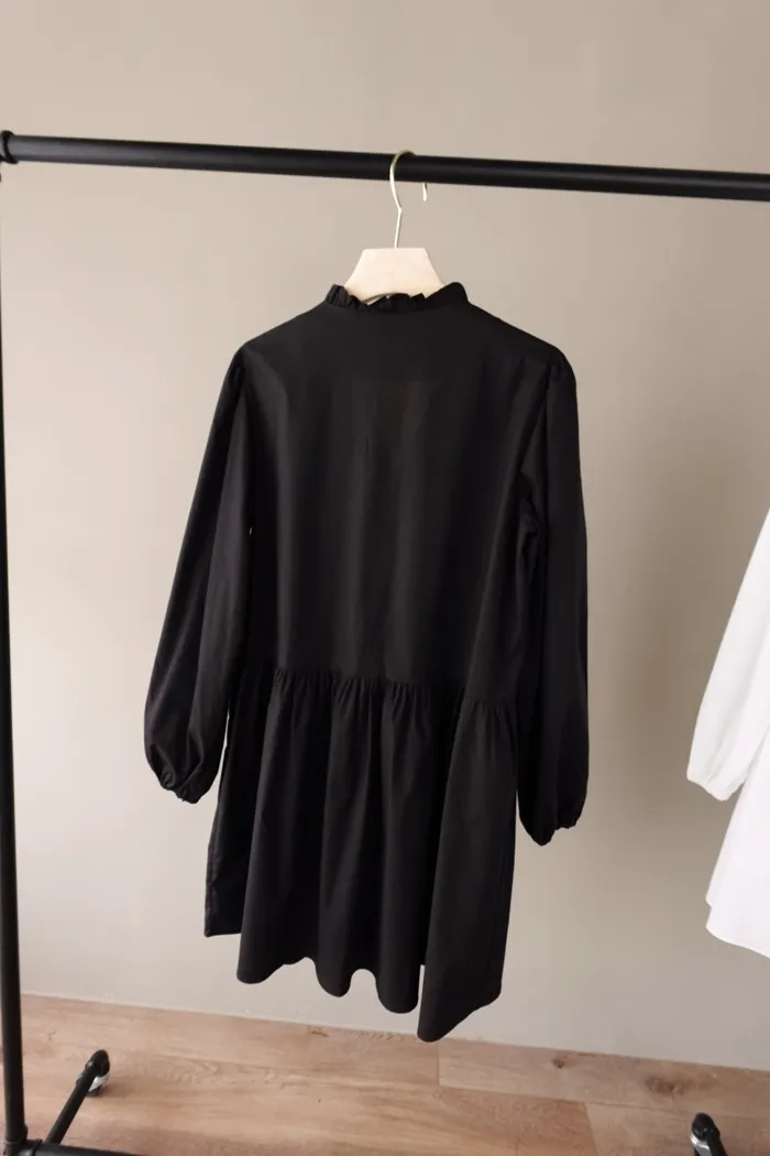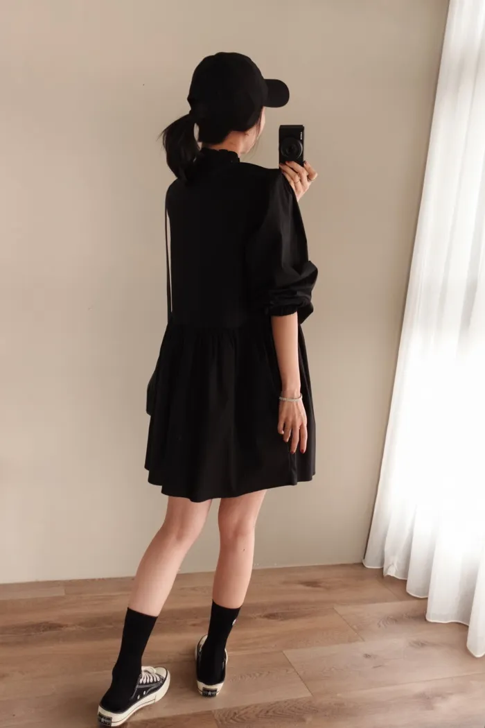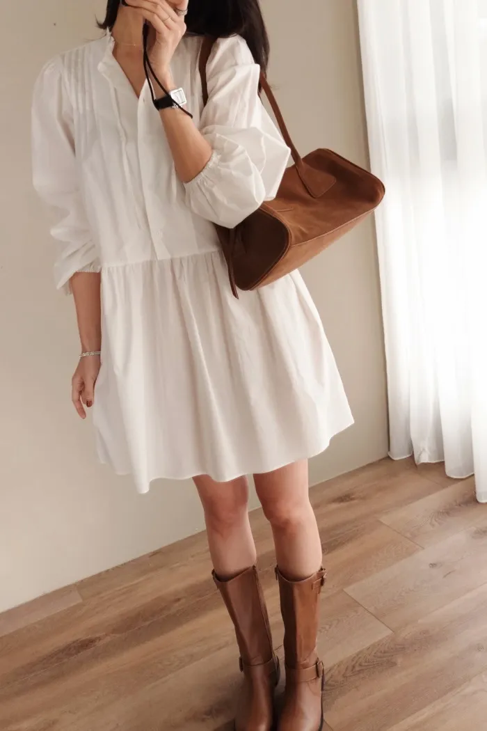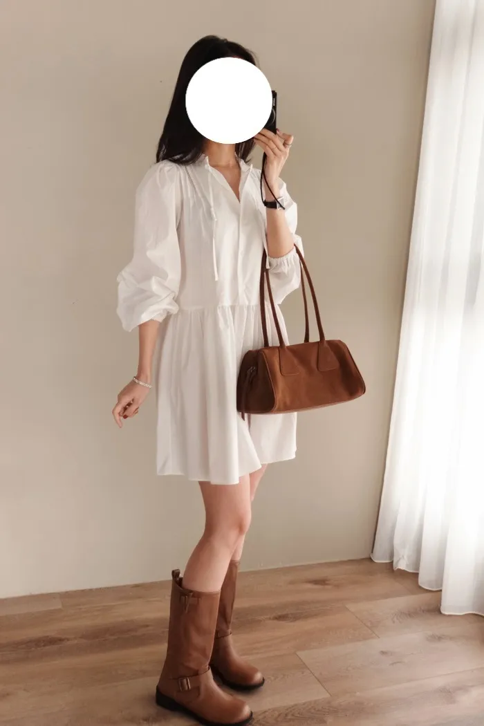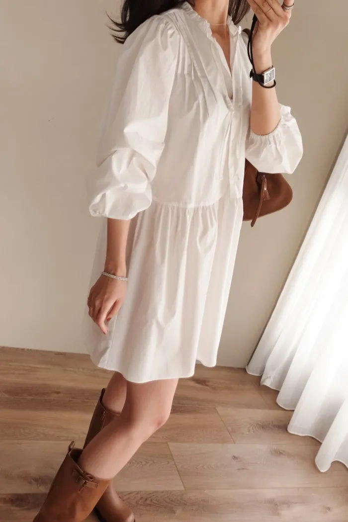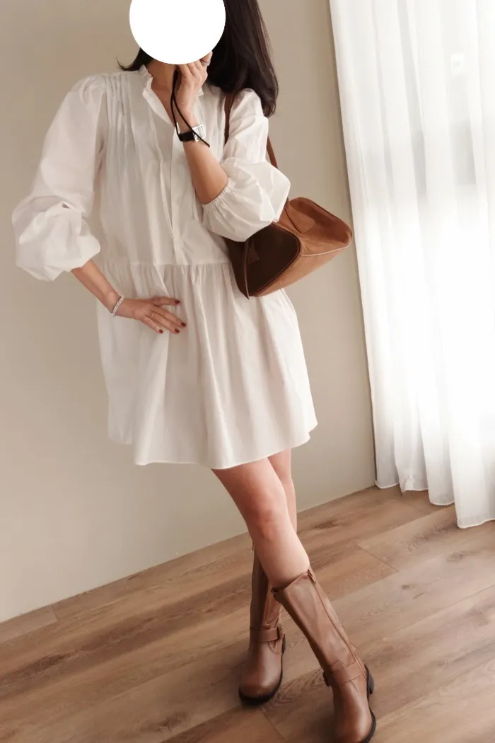 有鬆度的袖管不僅視覺上讓洋裝線條更豐富