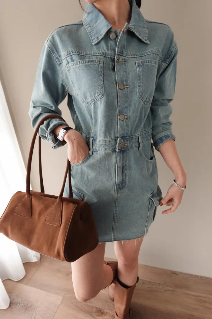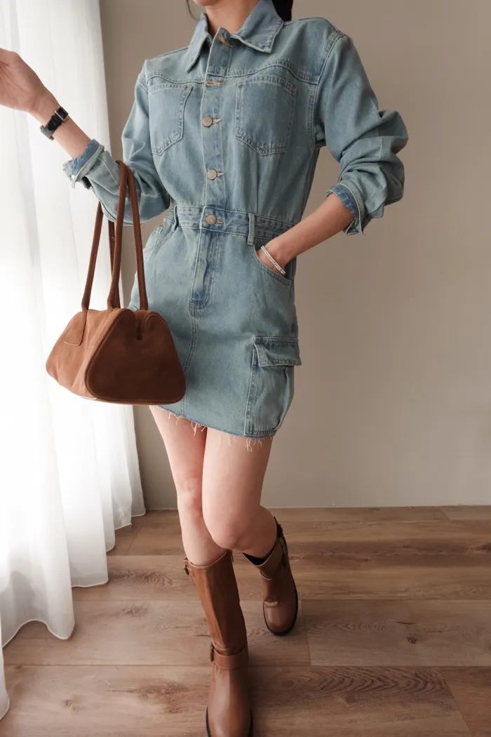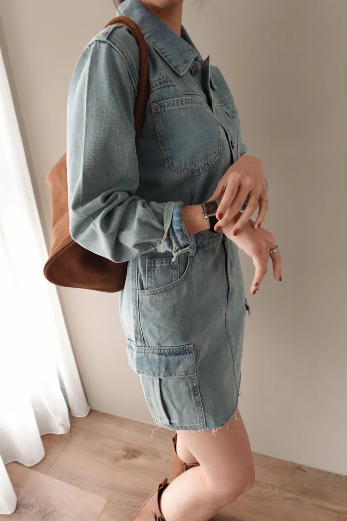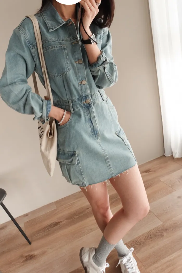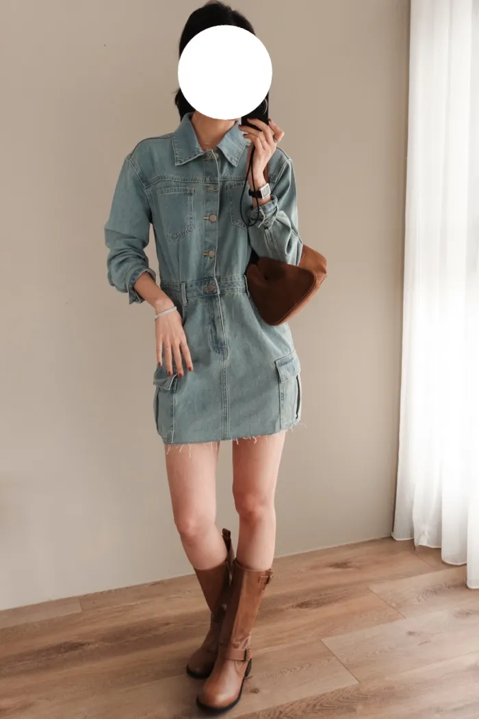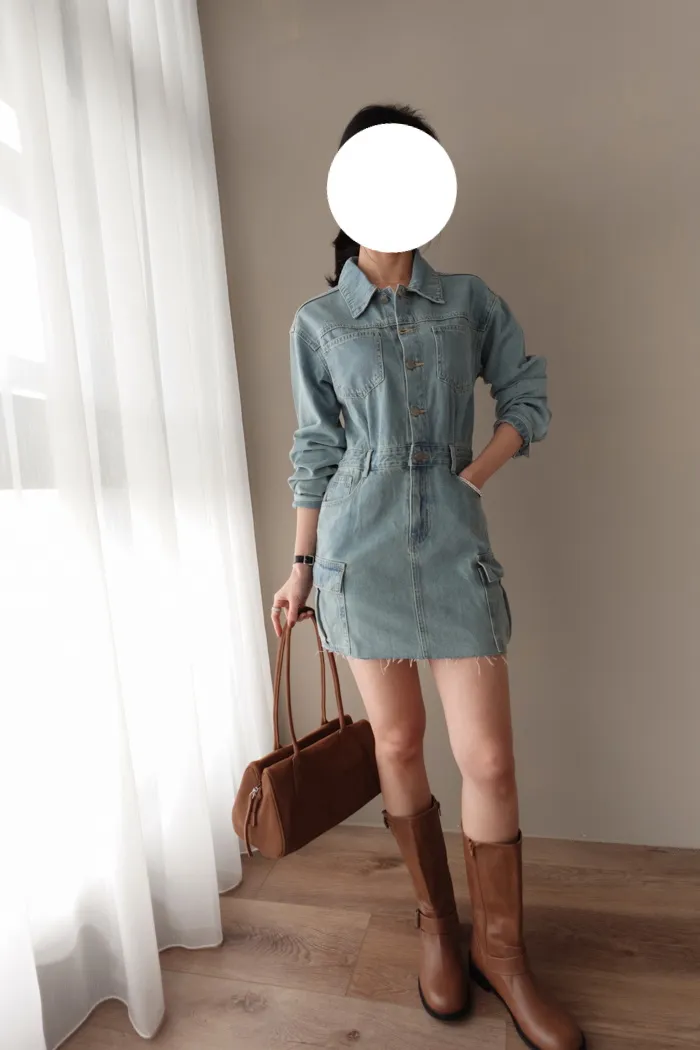 這款的溫淺藍牛仔色調還有連身牛仔洋裝都很少見