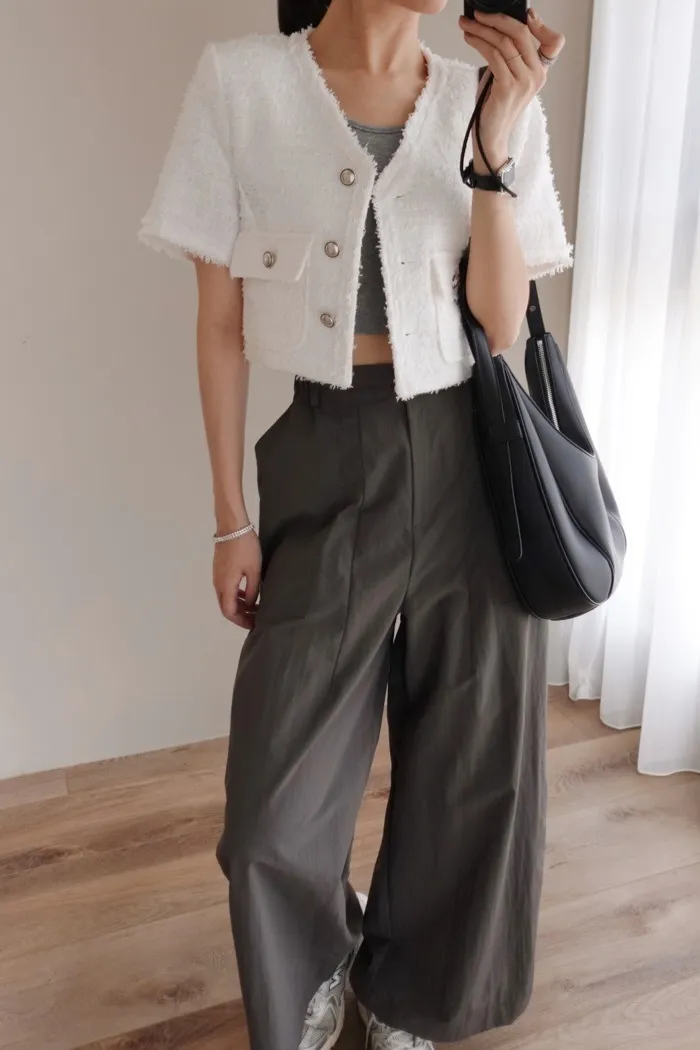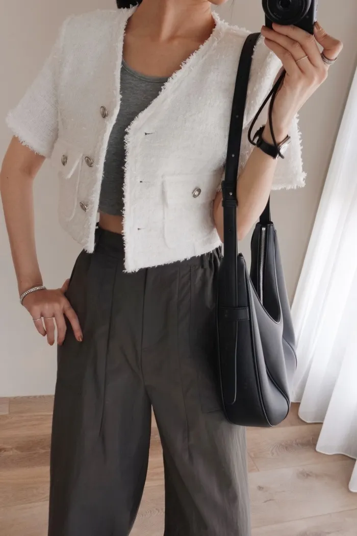 近幾年的高腰褲款趨勢 這種短版外套真的很熱門