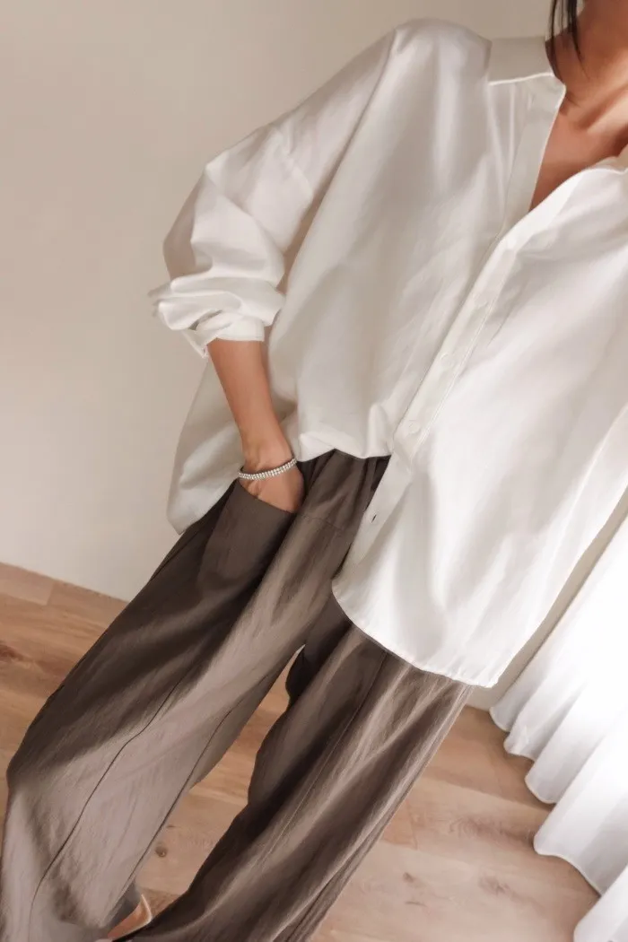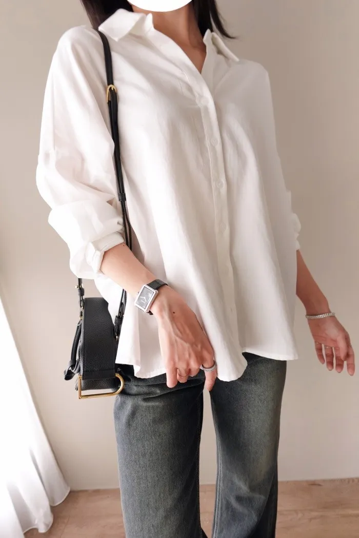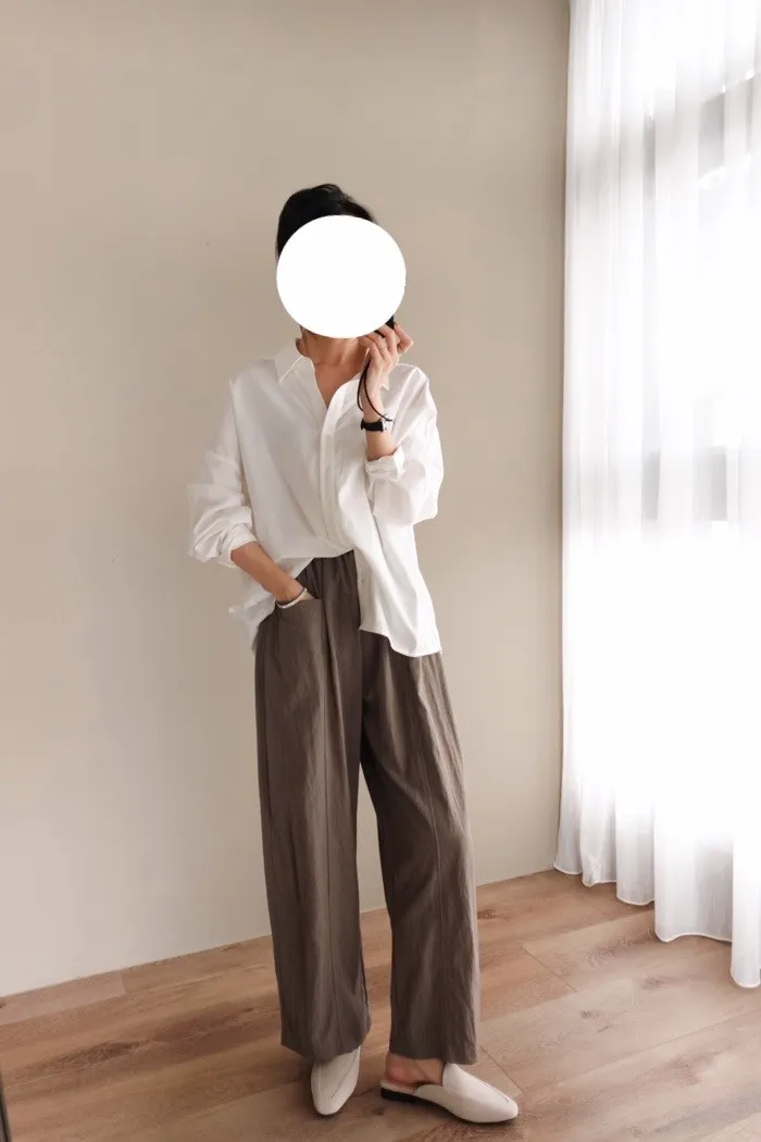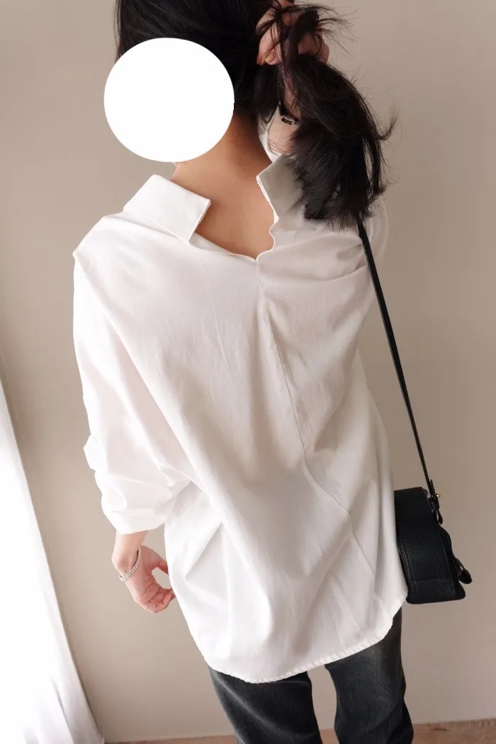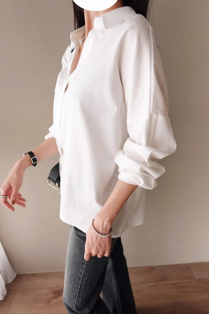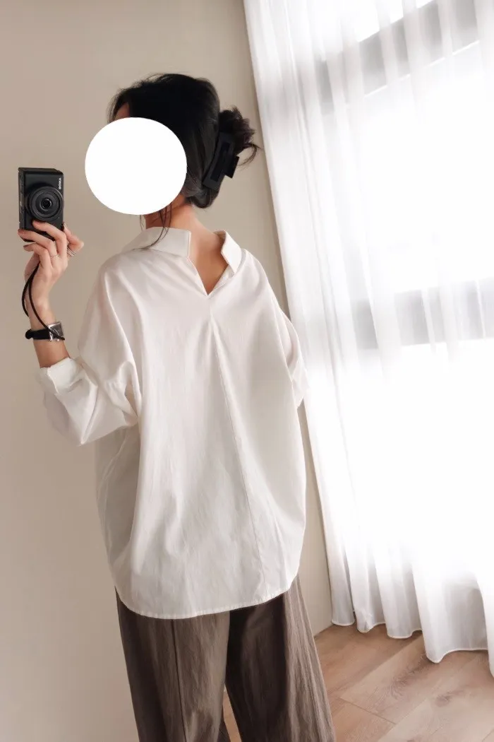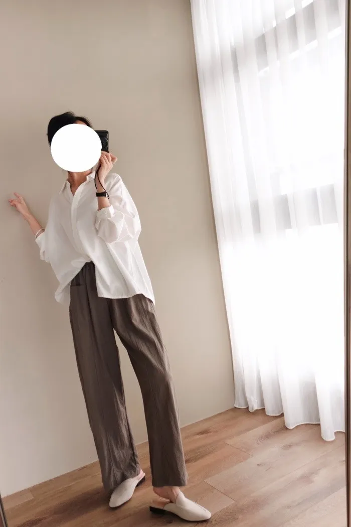 隨性的捲捲袖紮起頭髮 穿上這件闊版白襯