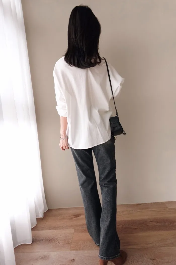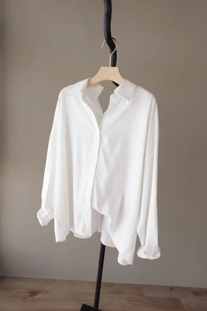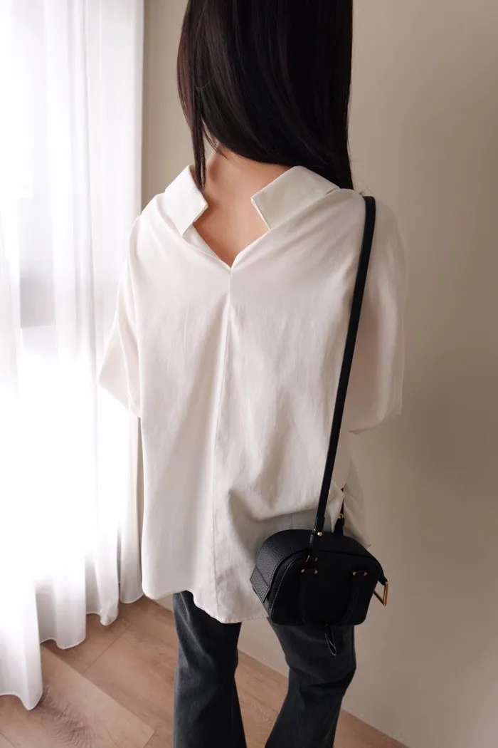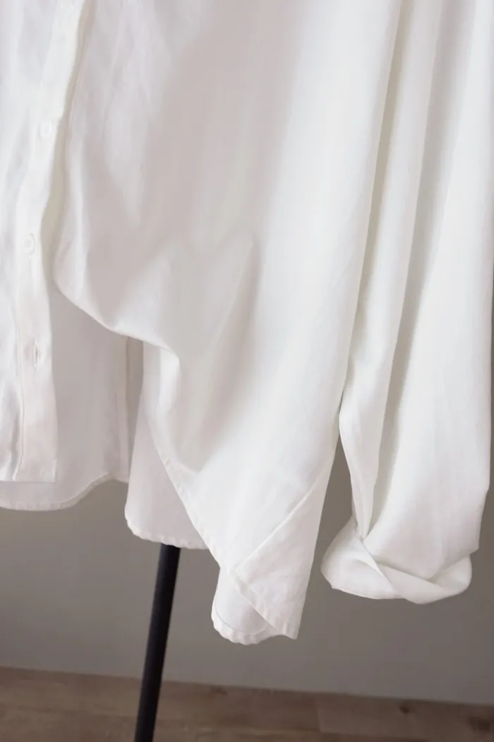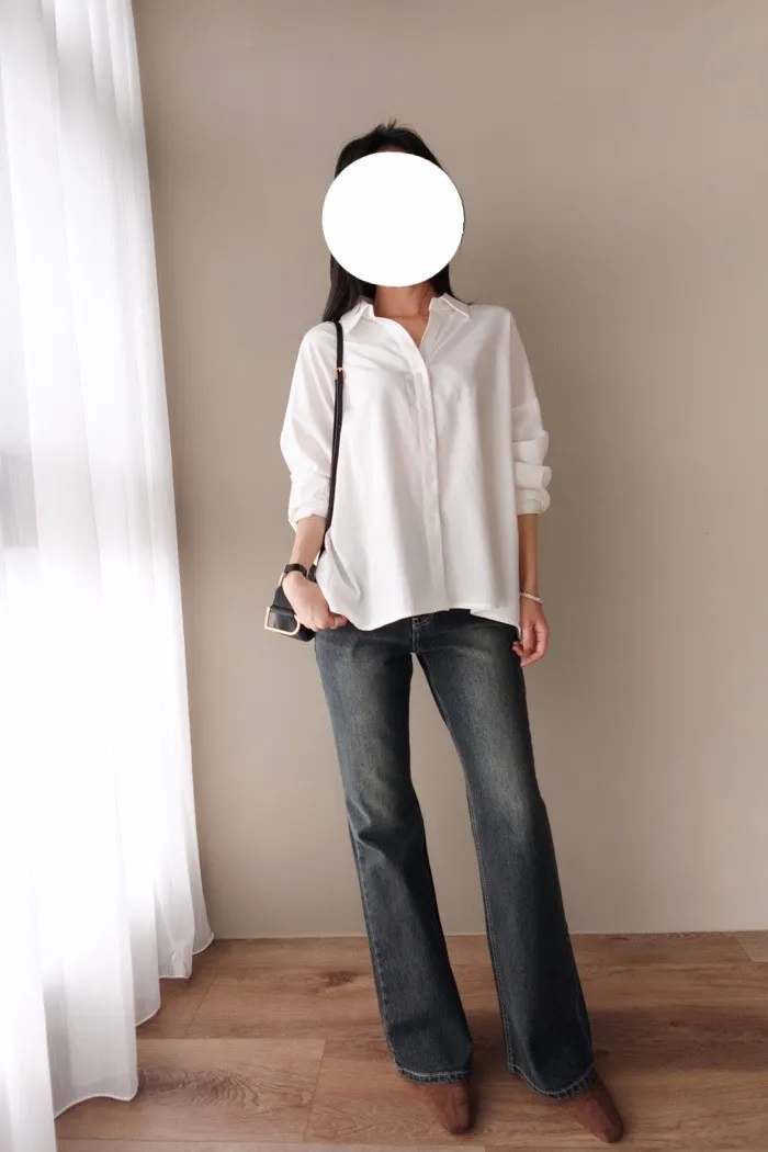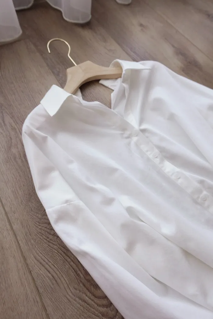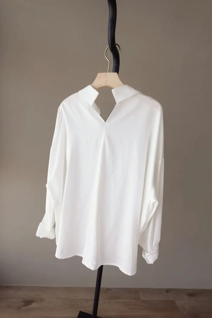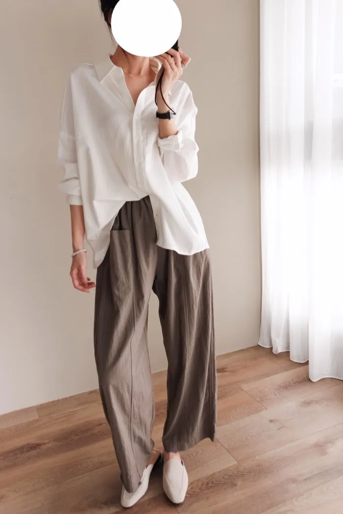 隨性的捲捲袖紮起頭髮 穿上這件闊版白襯