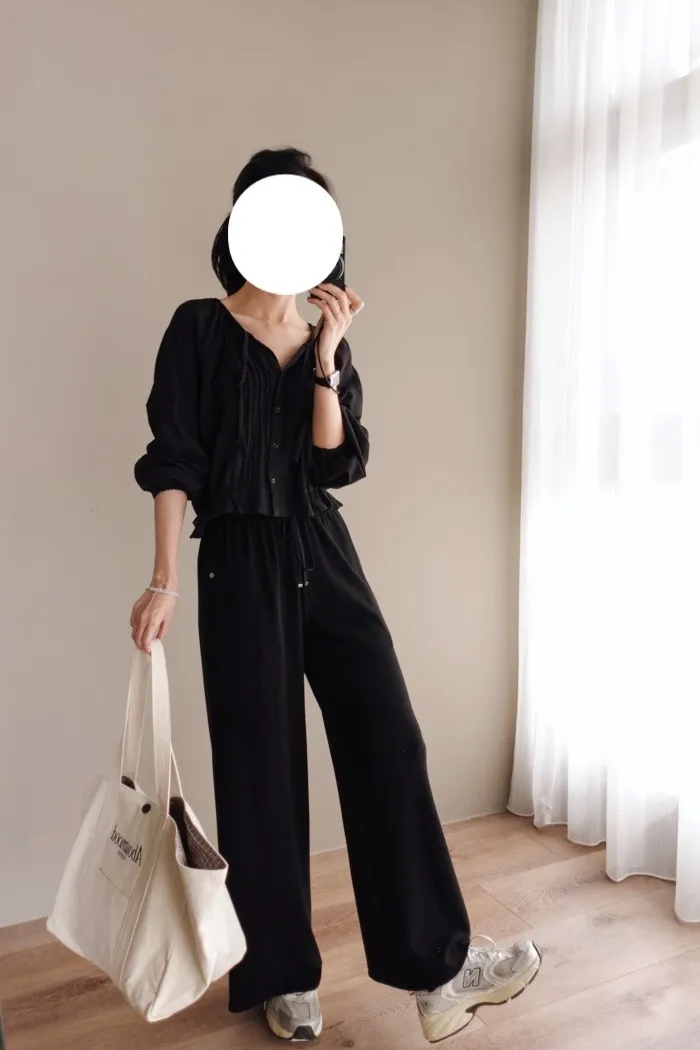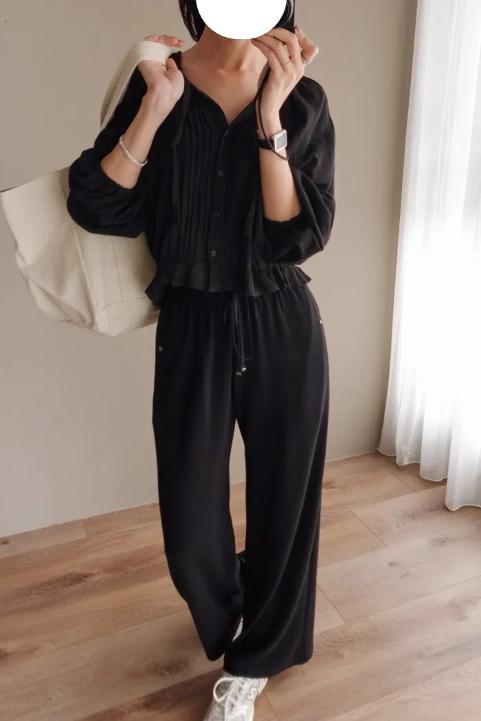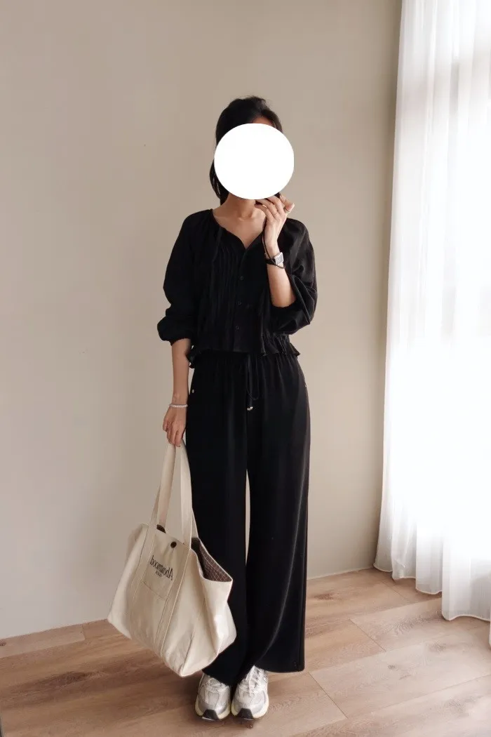甚至嘗試了搭上休閒的棉褲 竟然也好適合