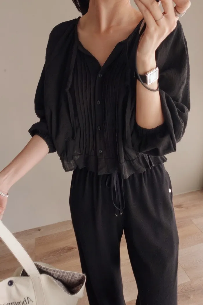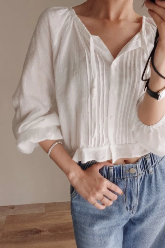 這款領口360度整圈抓摺 還有開襟旁的打摺設計也很美