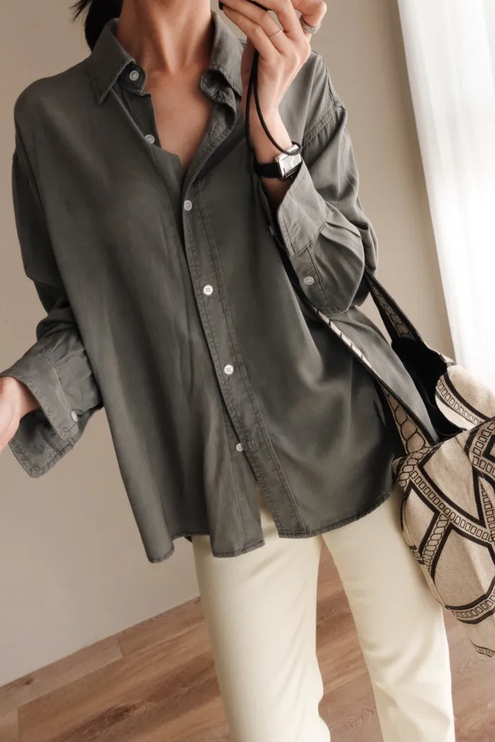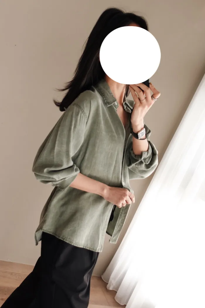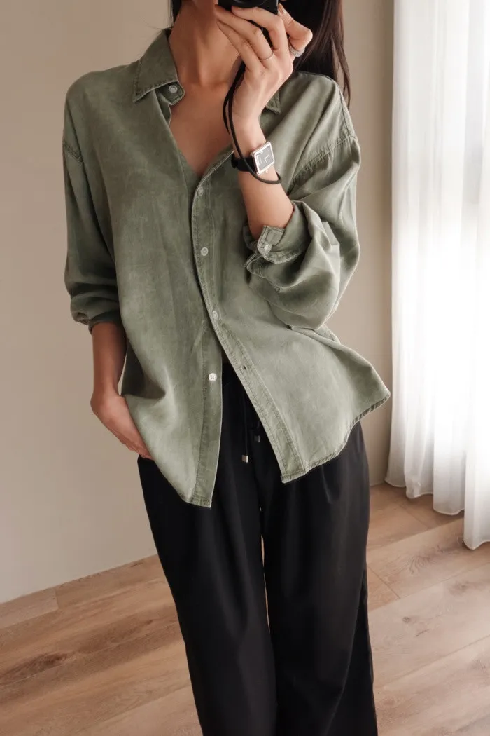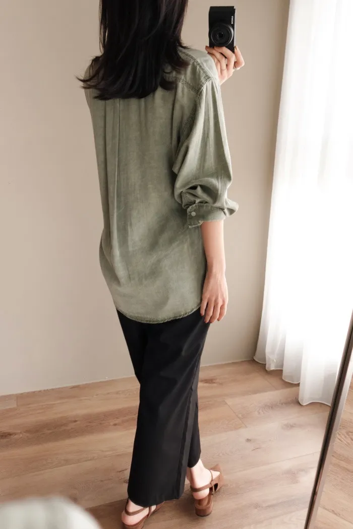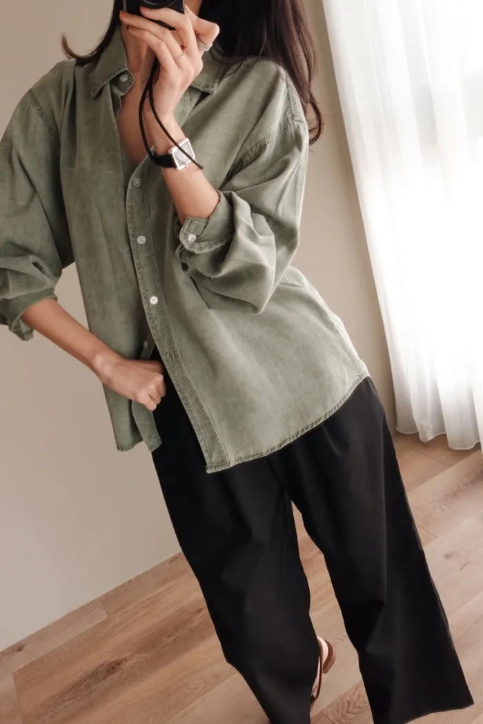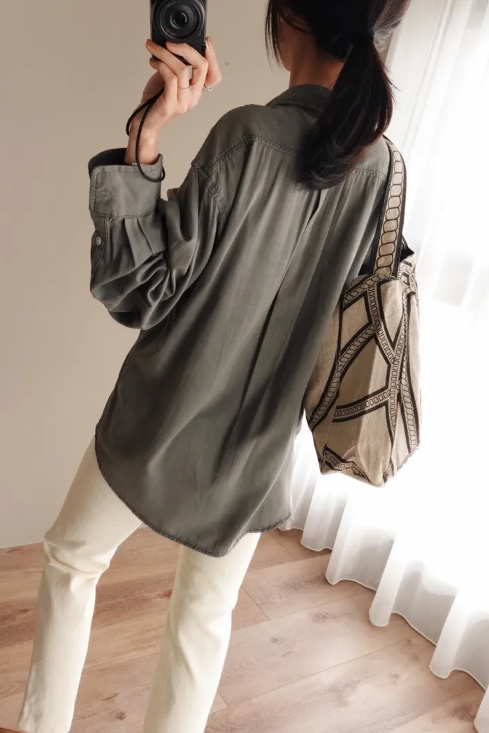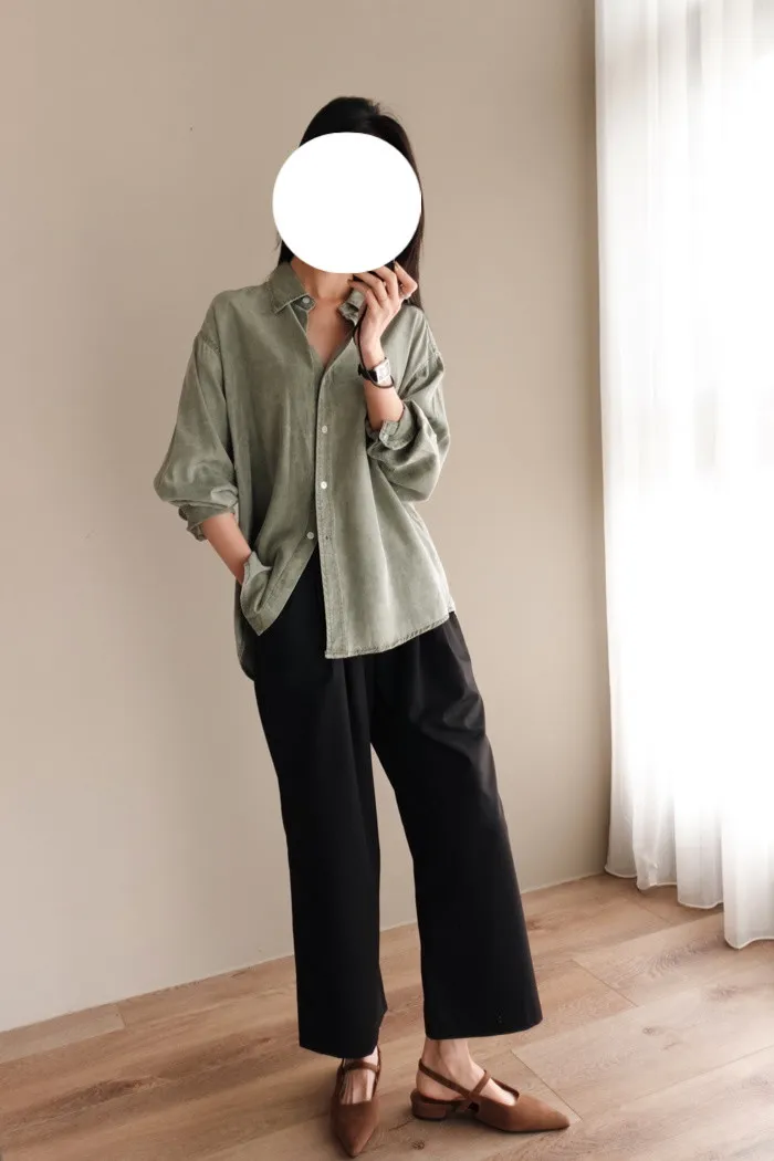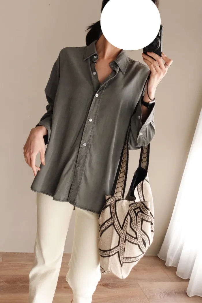 喜歡這種不需紮衣也很好看的襯衫版型~