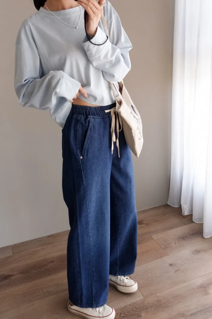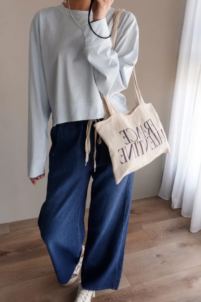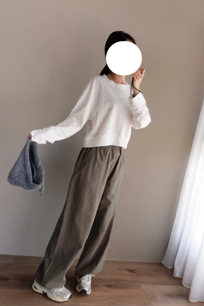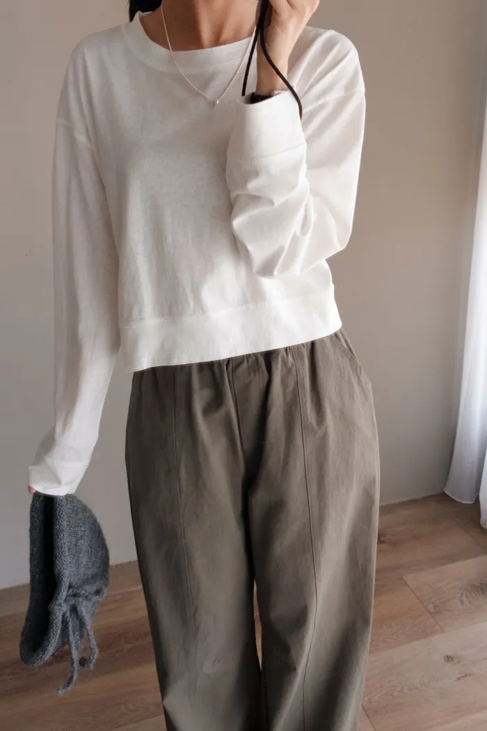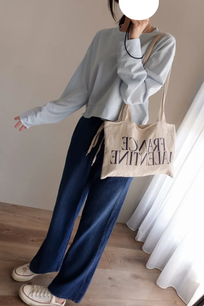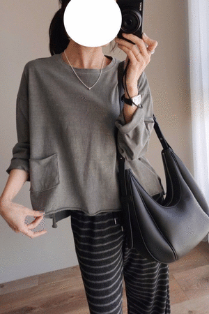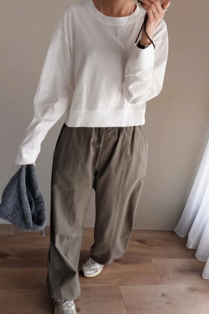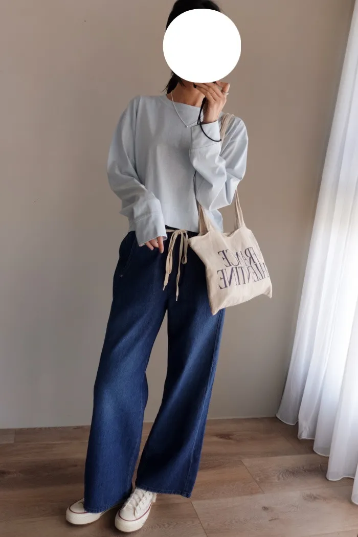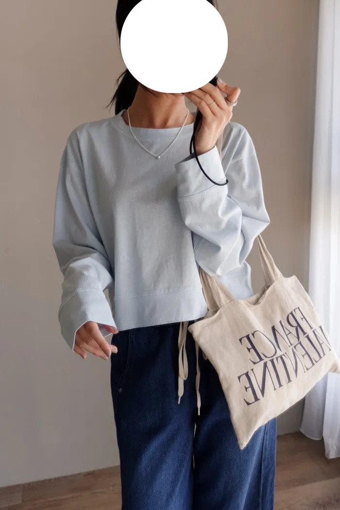帶寬鬆度的短版上衣 卻又剛剛好蓋到一點褲頭不擔心太短~