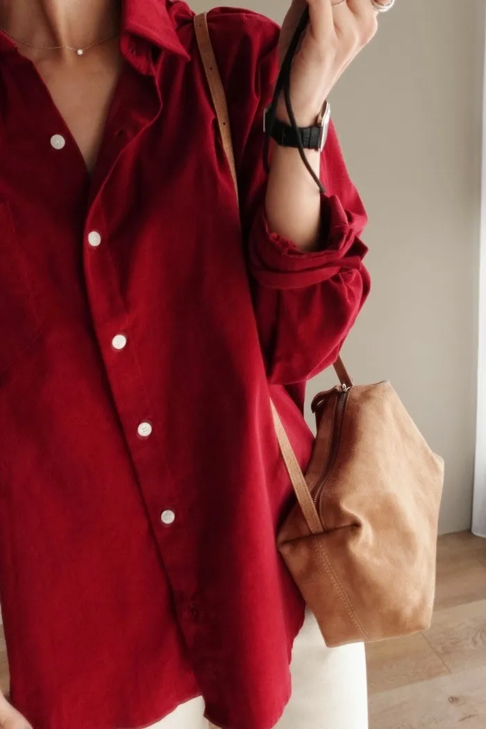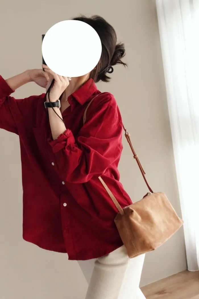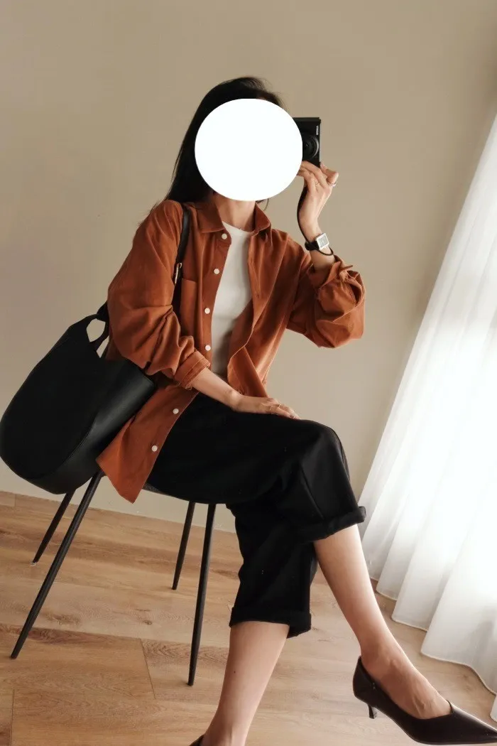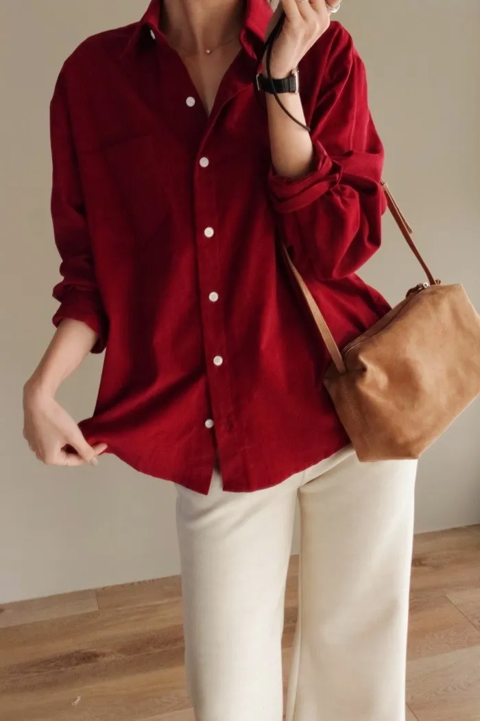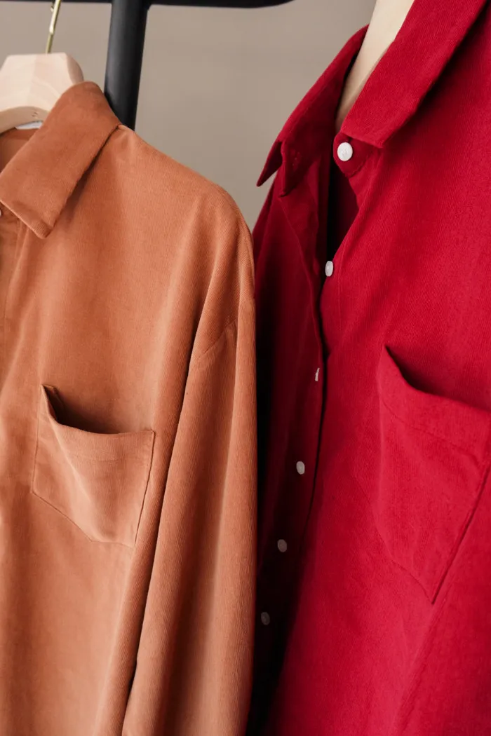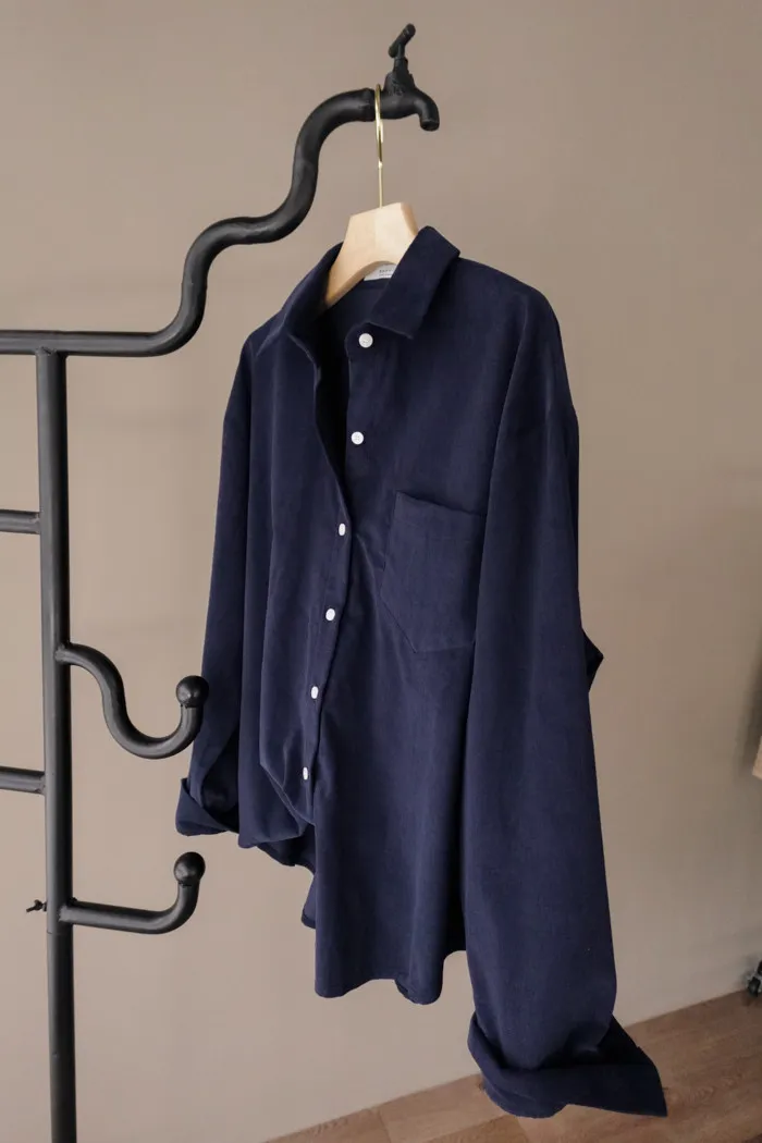 真的換季了:") 連牛津襯衫都換上我們愛的燈芯絨材質♥
