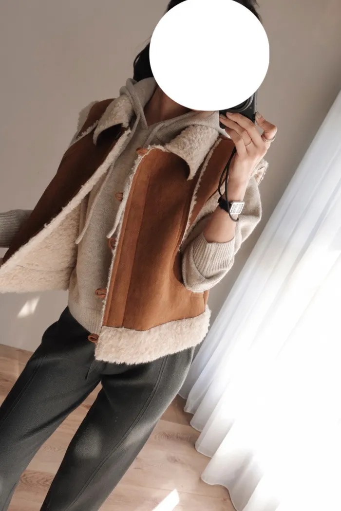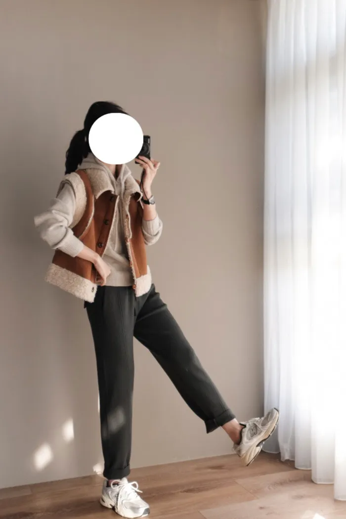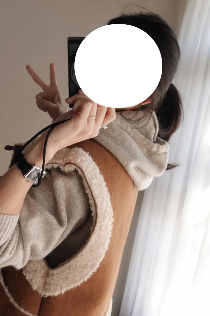請先看燕麥色的照片 我只是拿了手邊的羔毛背心結果超美耶