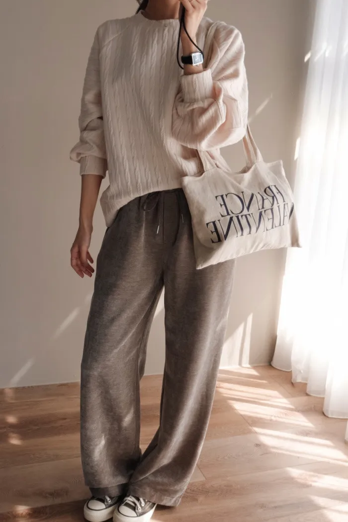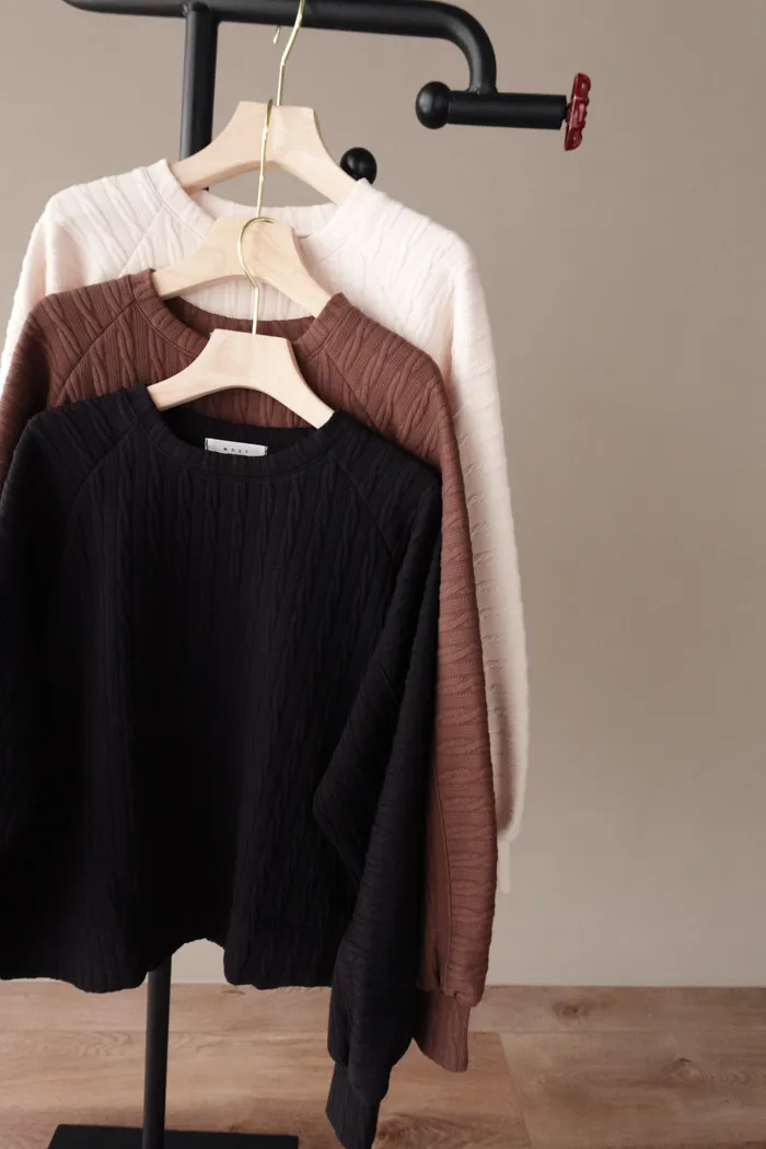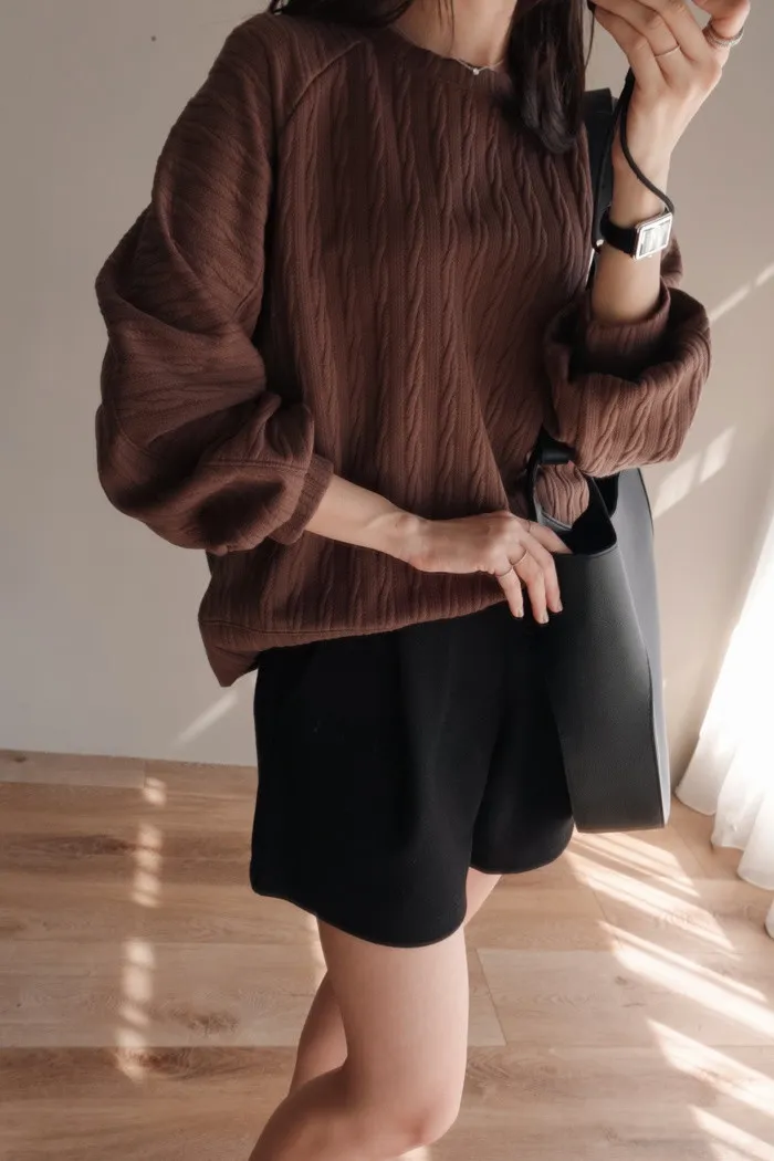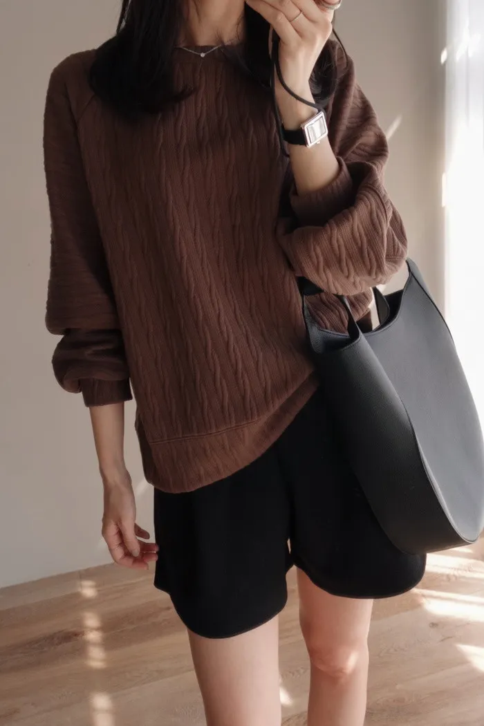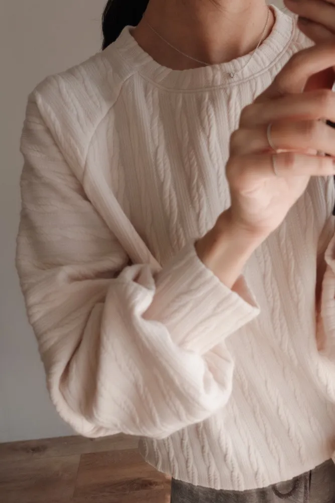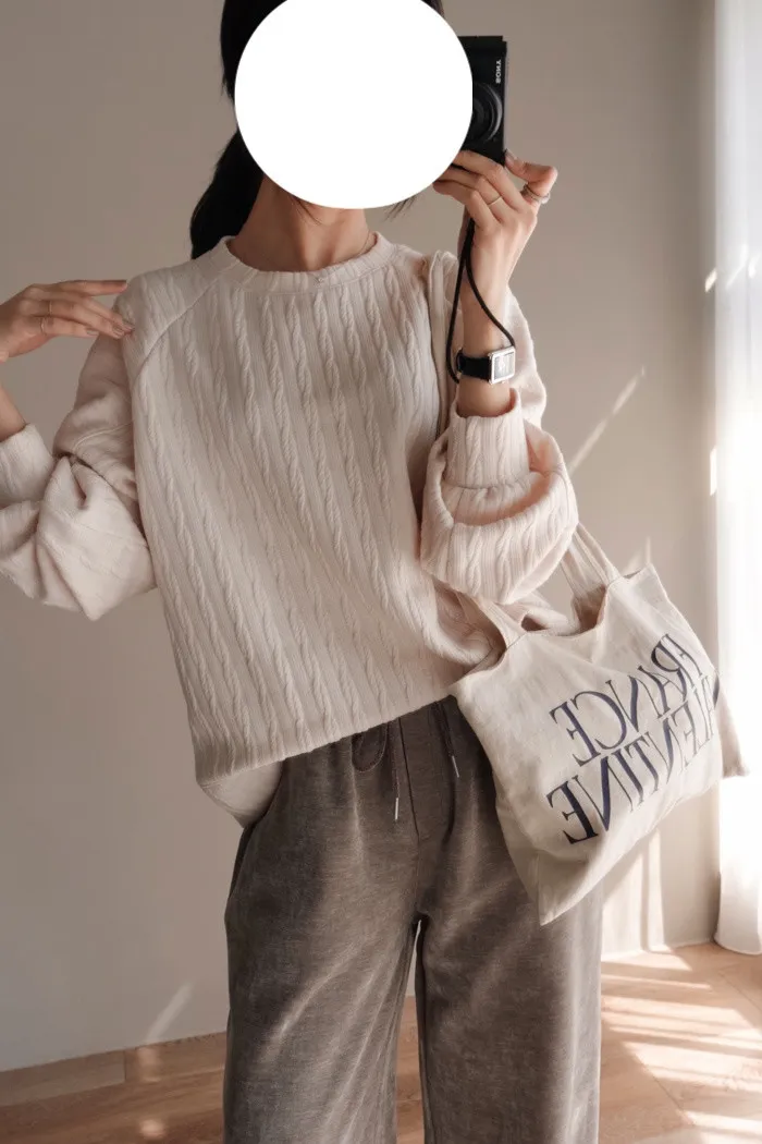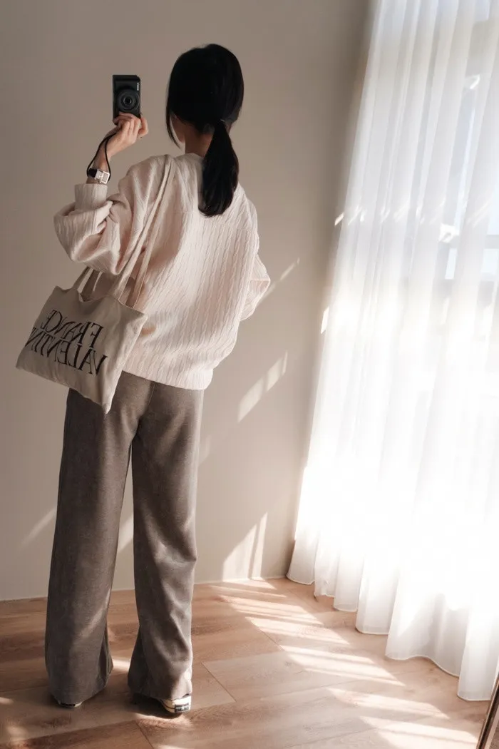 面料上的平面壓痕讓細麻花紋理滿佈仍淡淡的不會膩眼