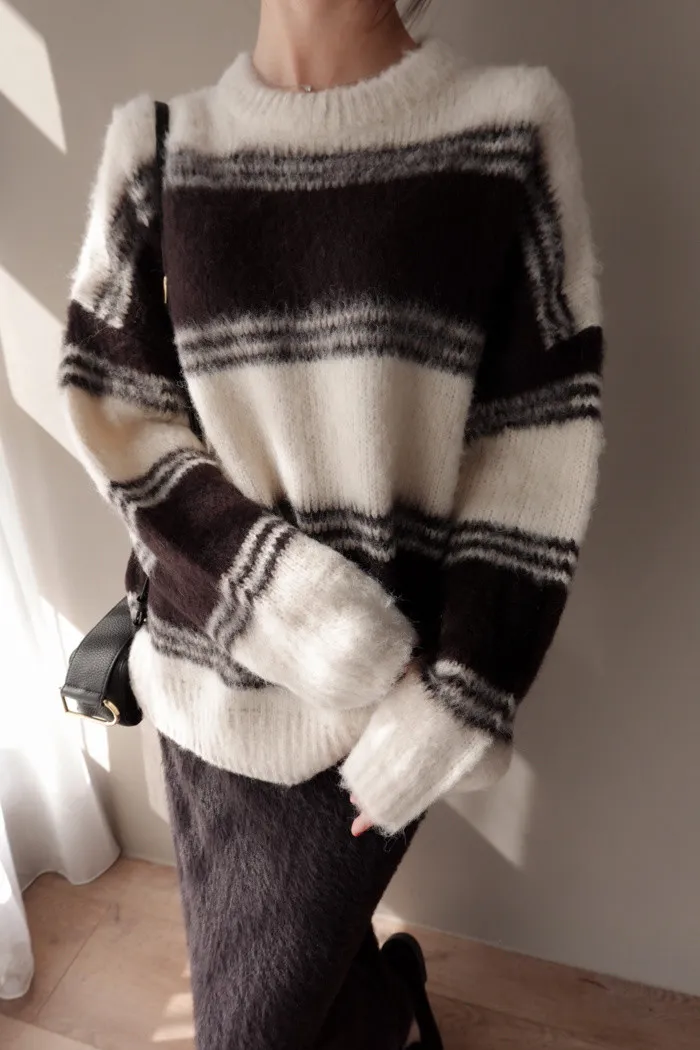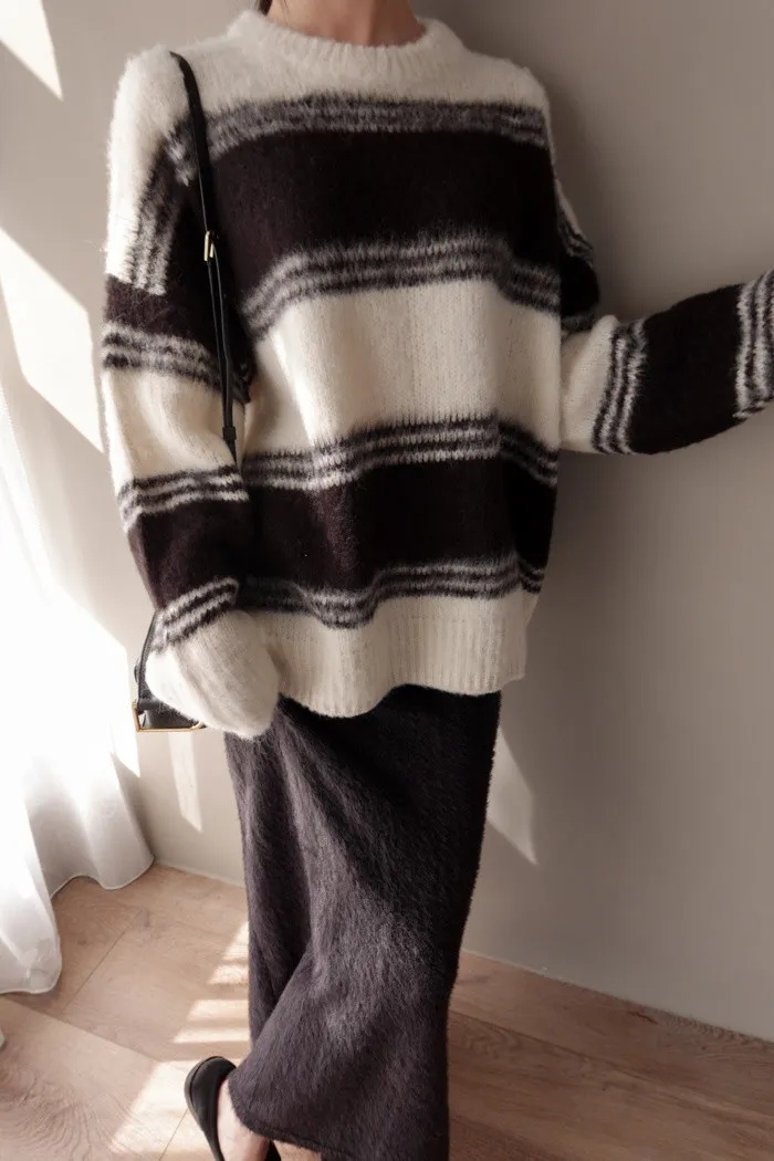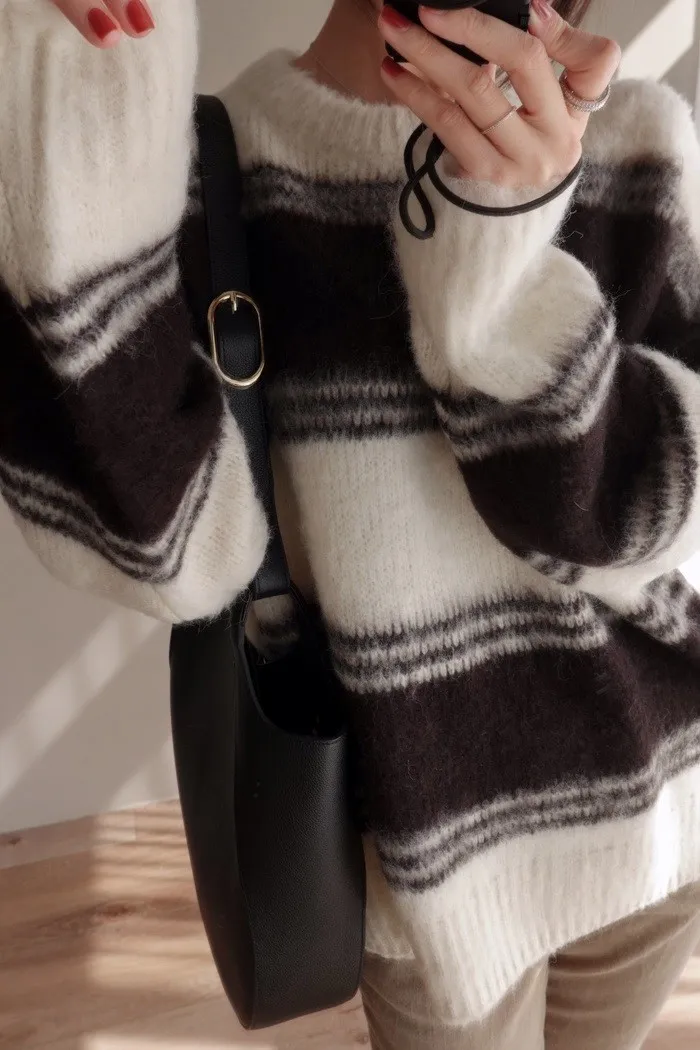 簡約的劃上寬橫條 是能駕馭各種風格的簡單毛衣