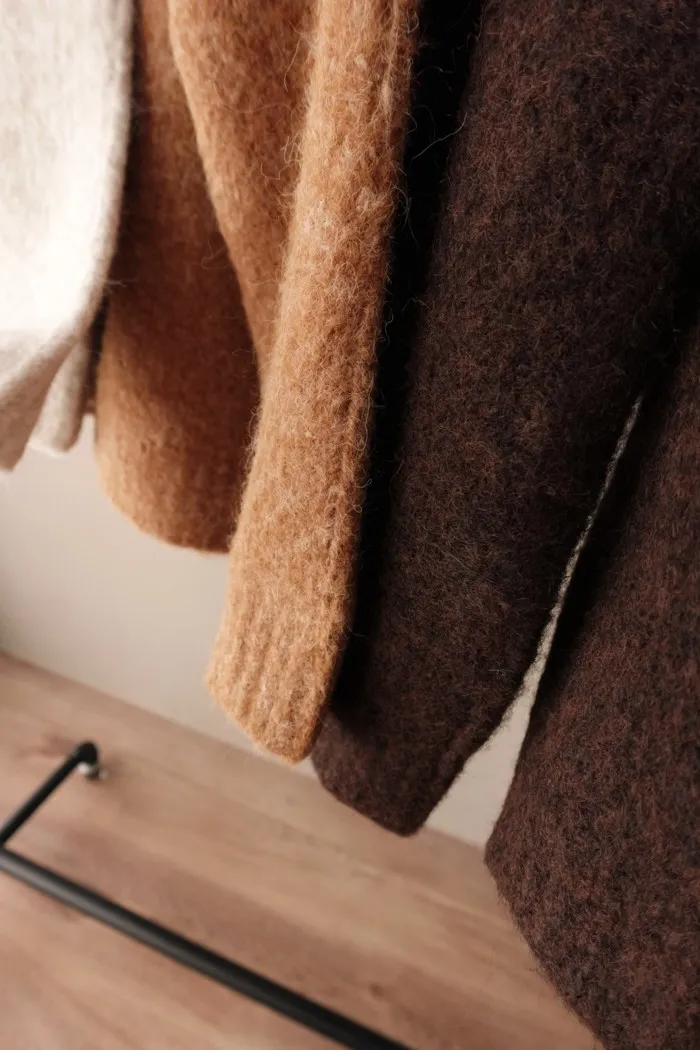 搭配上低明度的土磚色系列 是很獨特的針衫色調