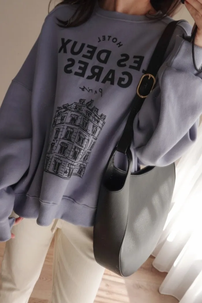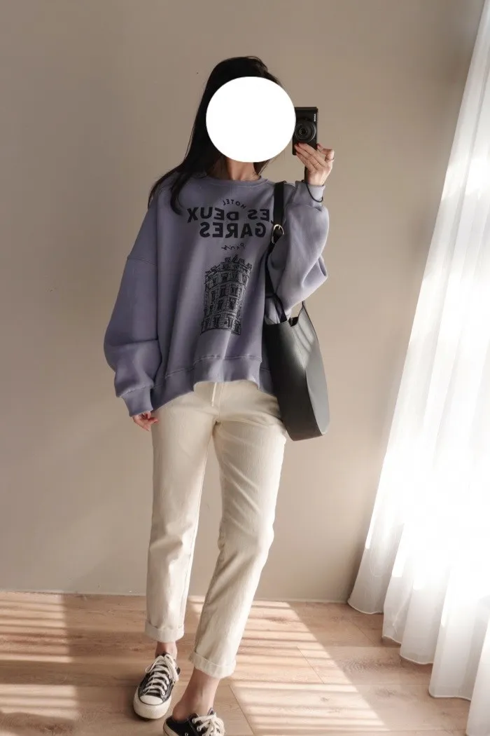 手繪感很有溫度 搭配上厚度也很溫暖的棉T上特別有感覺