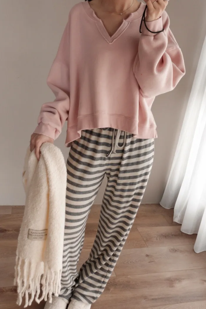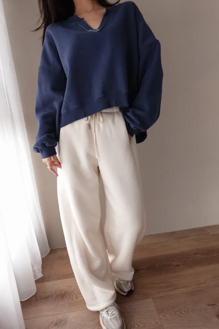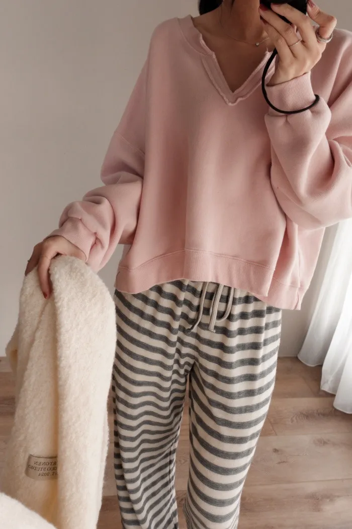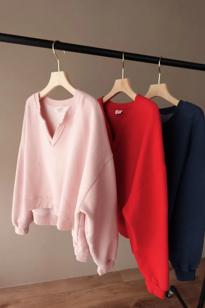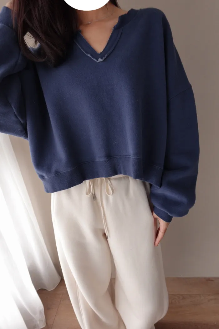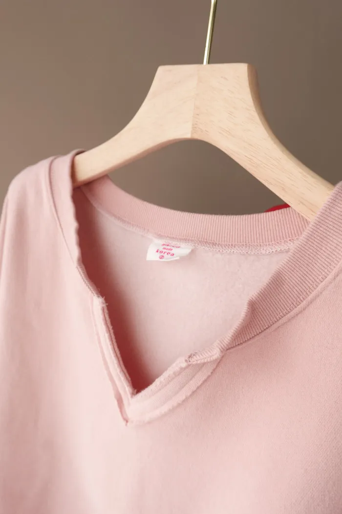 而V字延伸順上銜接螺紋領口 繞過脖子以圓領設計