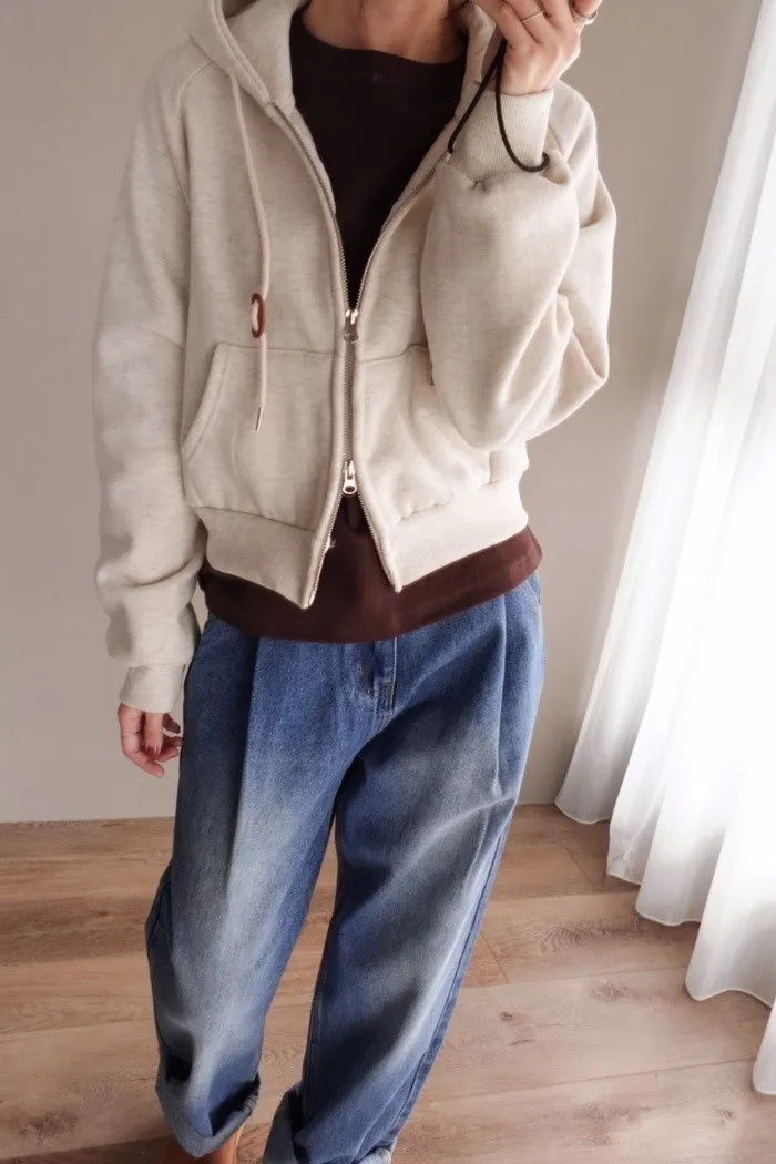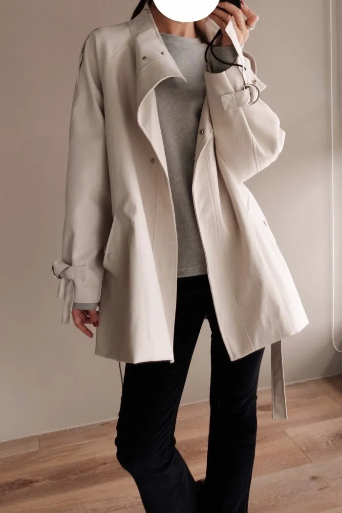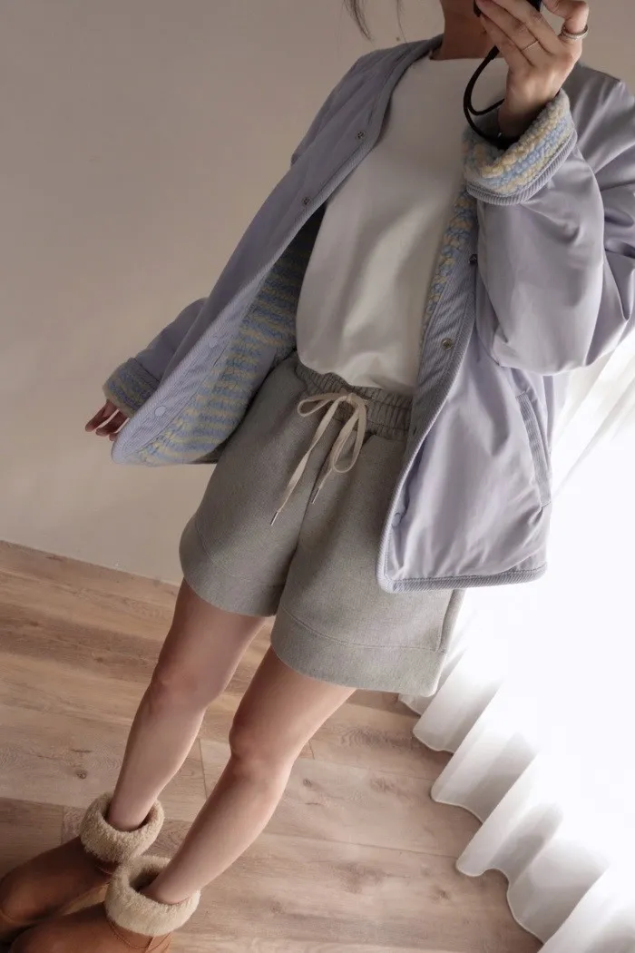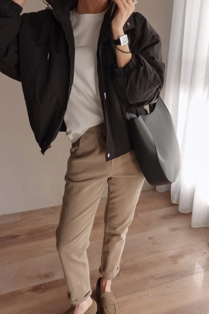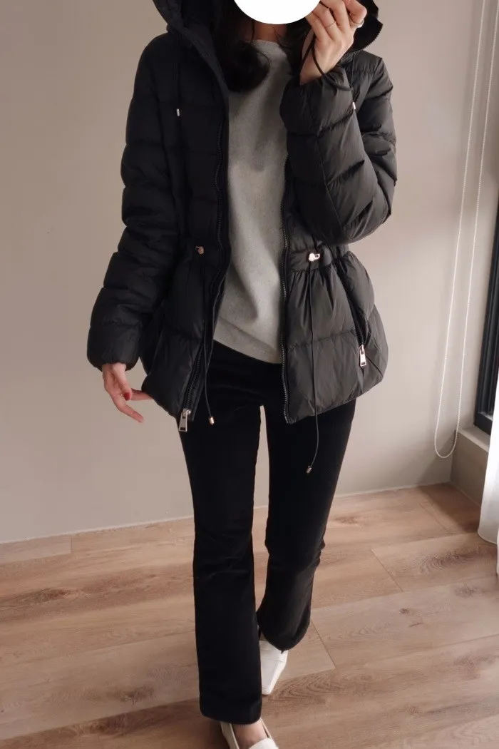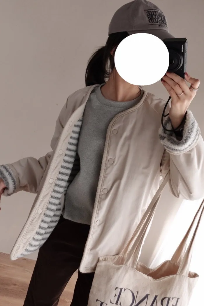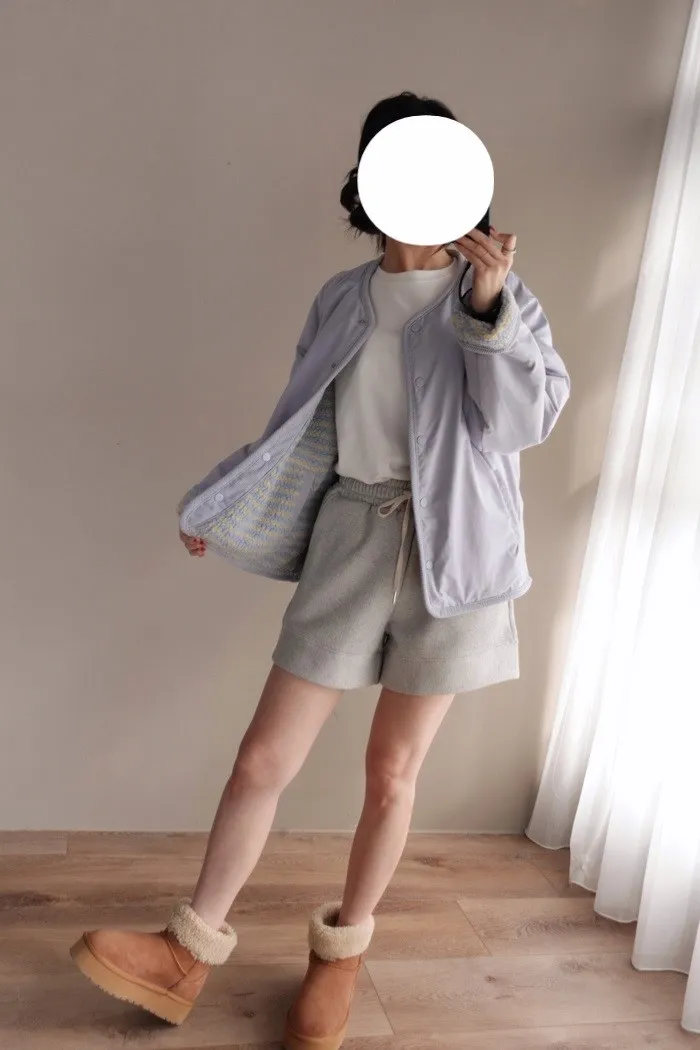 穿起來還保有一點的空間 大約是內裡可以藏一件發熱衣的程度