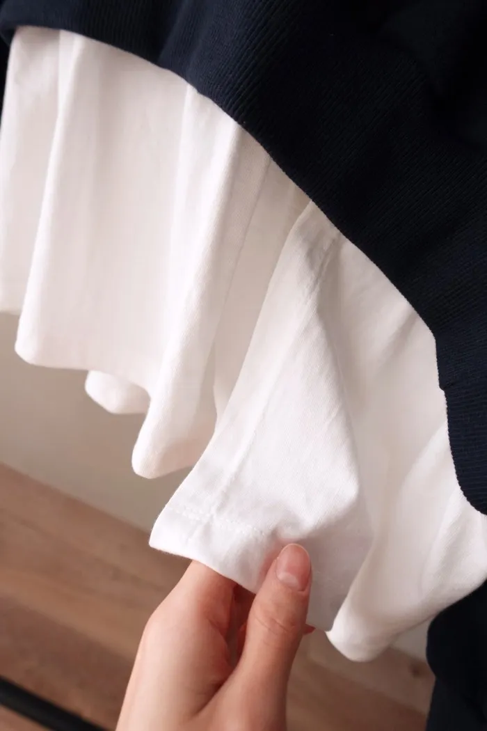 下擺處則接上一層純白薄T 對比感也有了✔︎