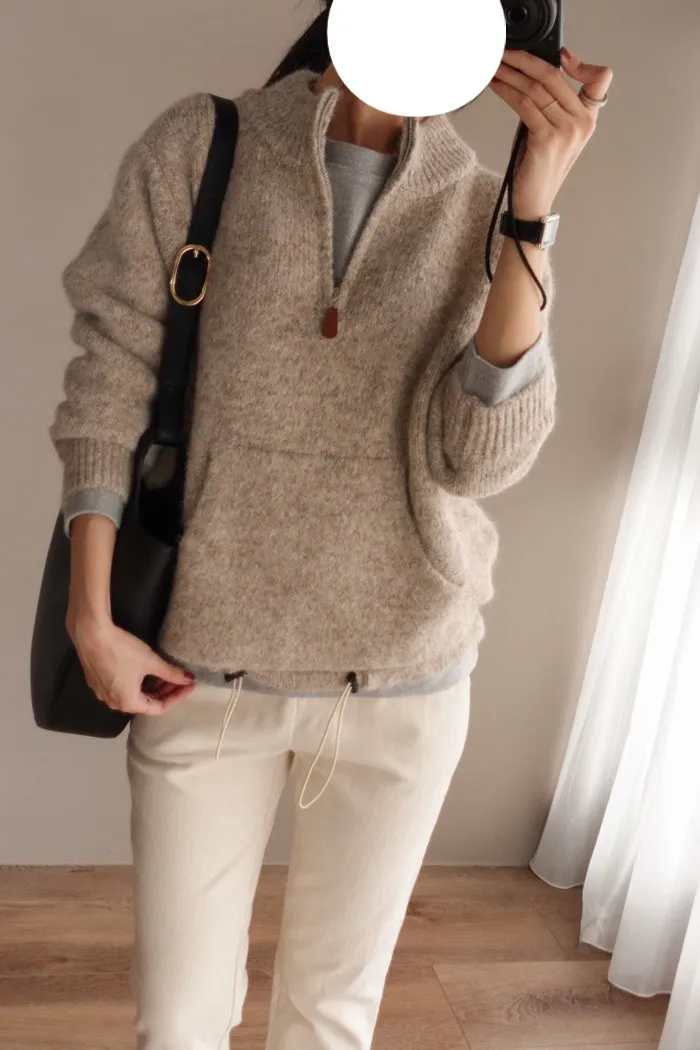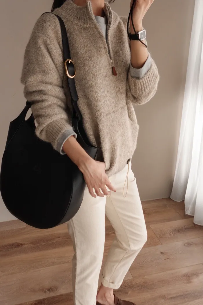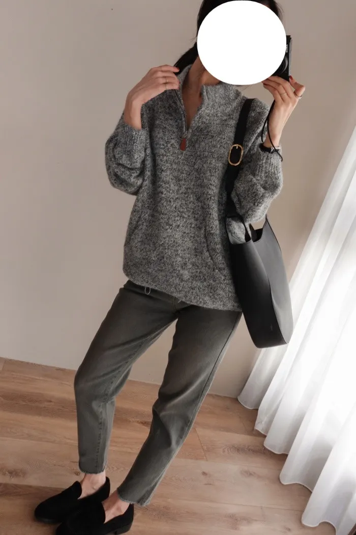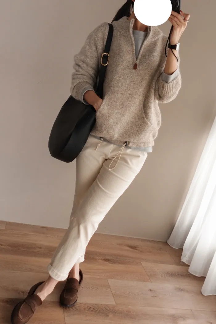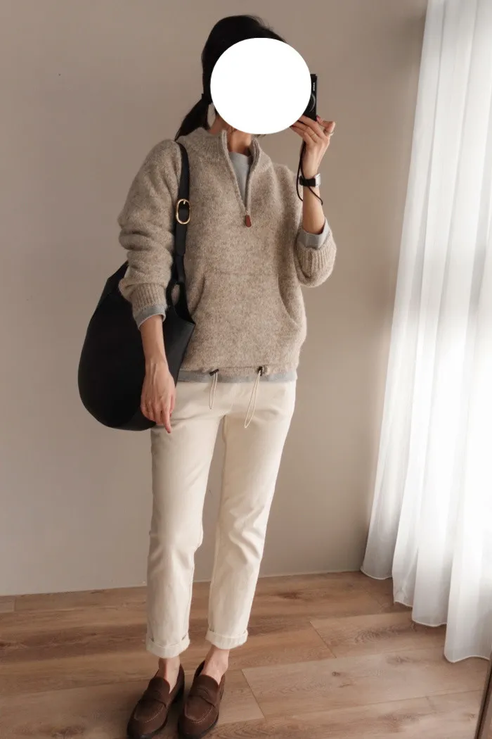 也可以不將拉鍊拉上 內裡加件棉T配色也很好看哦:)