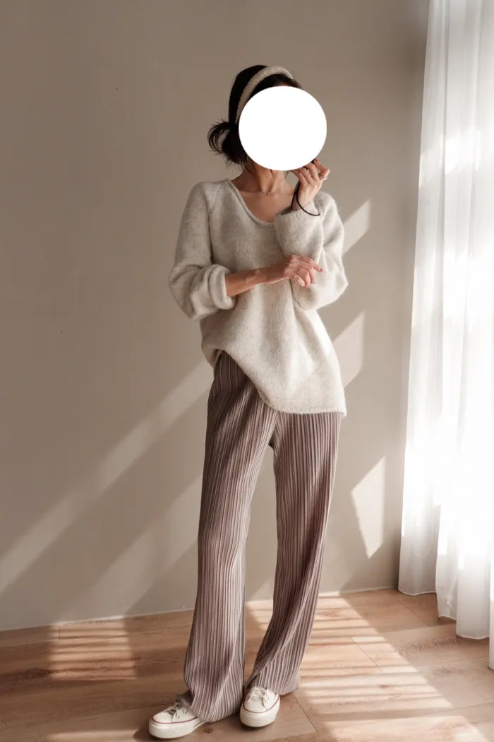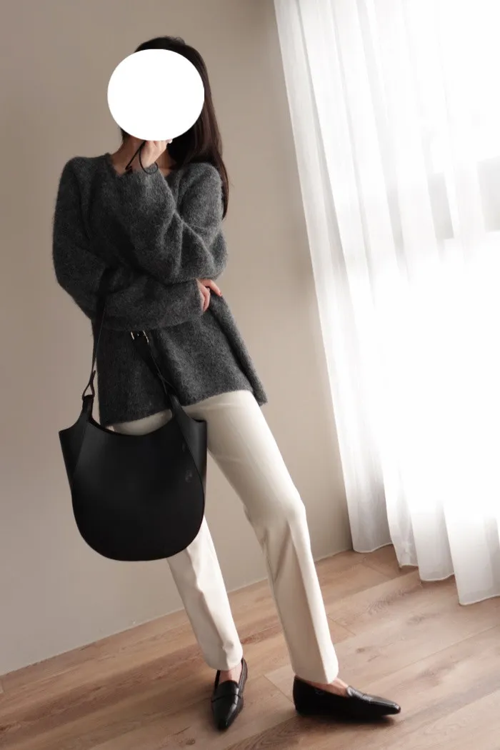 袖管則是有微微內收的燈籠袖設計 可以像暖灰色一樣反摺一點袖口也很好看哦!