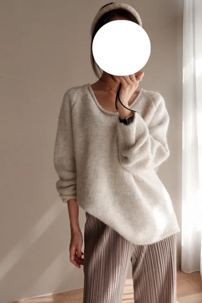 領口圓潤的捲邊緣與領口弧度和身型剪裁看上去莫名都有種圓弧舒服的感覺