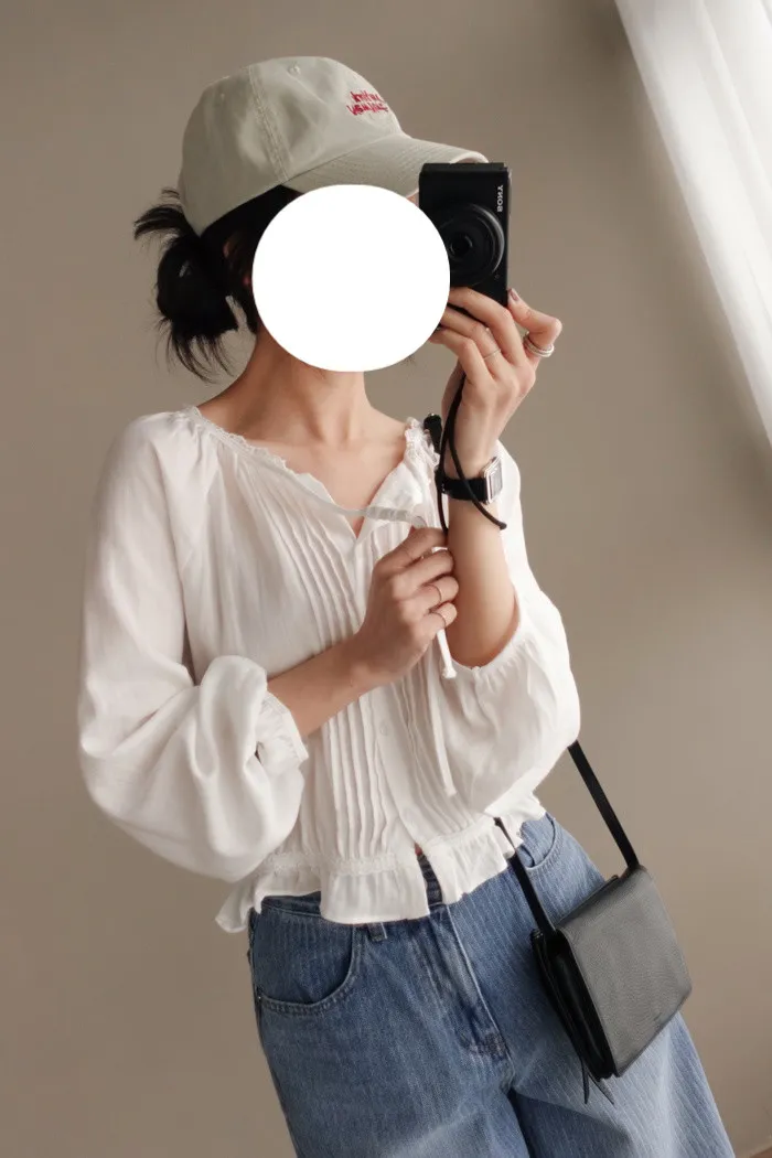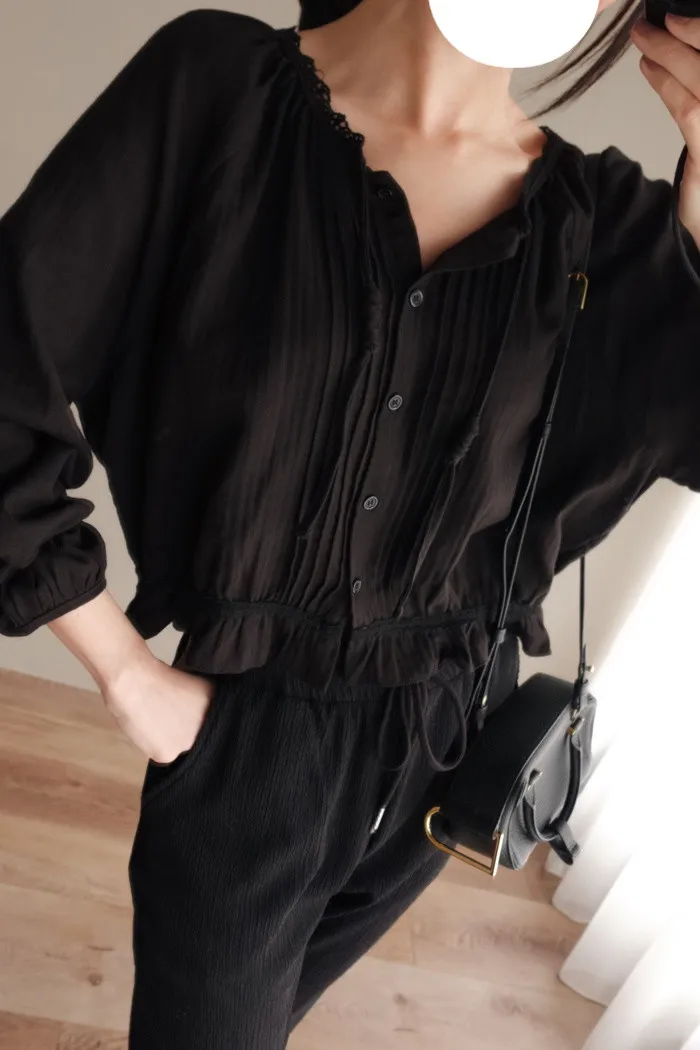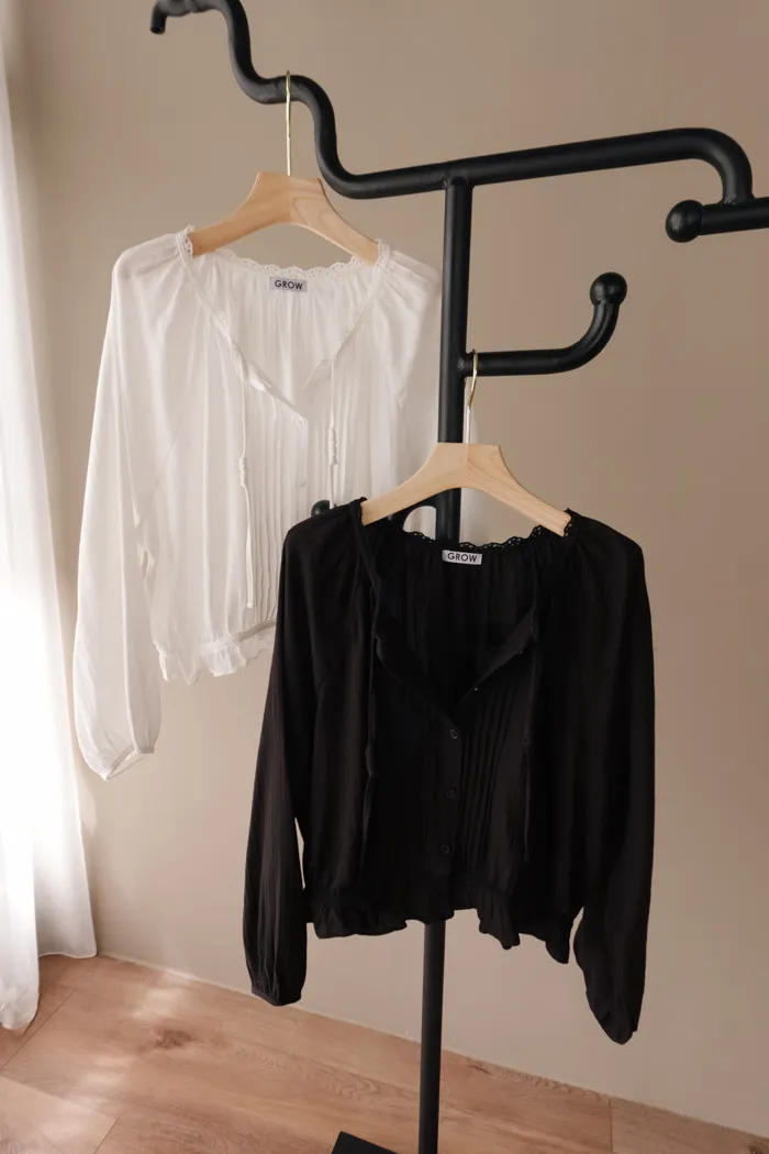 還有漂亮的蕾花領邊小細節與身上的立體線條打摺