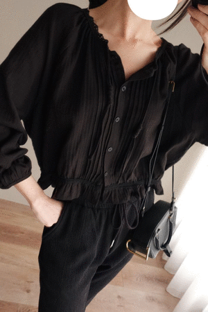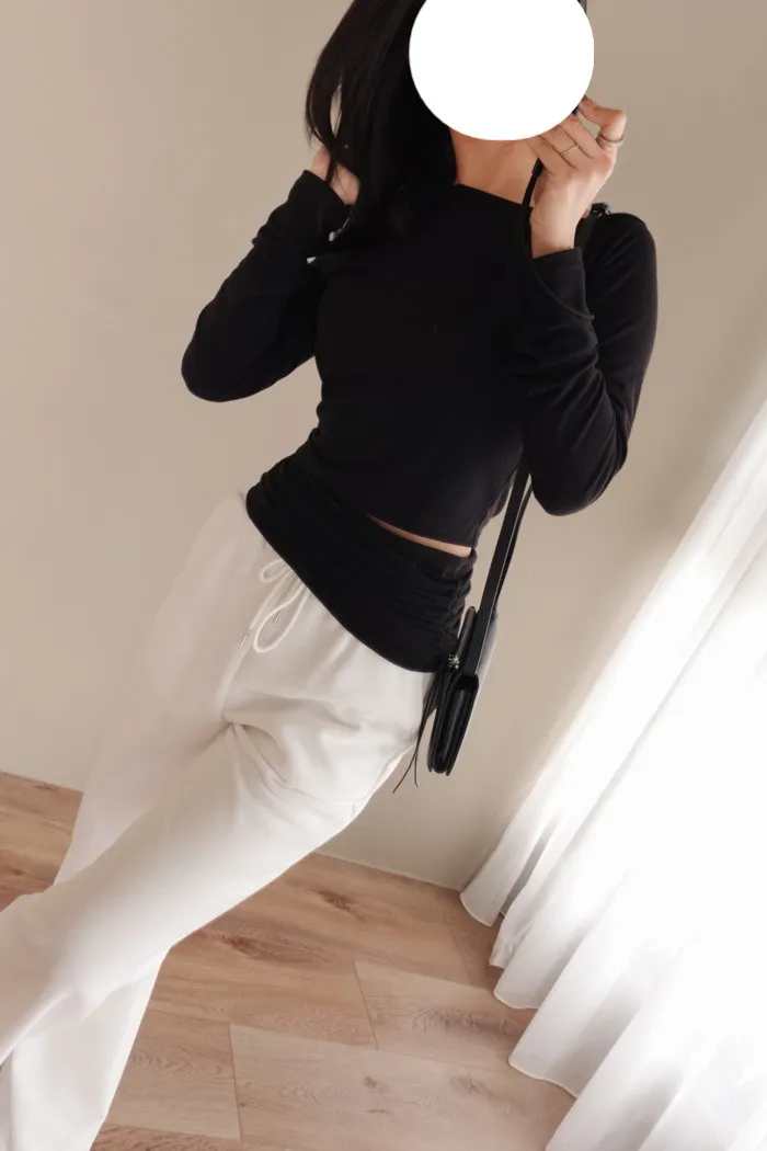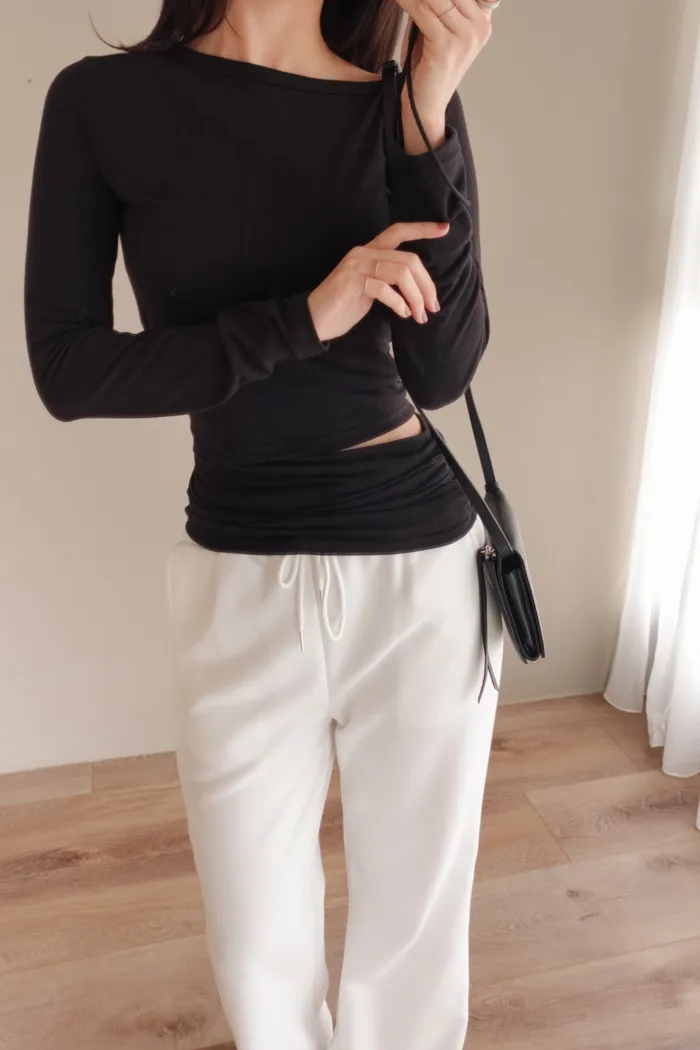衣服尾端是以抓摺設計收尾 讓視覺看上去更顯瘦