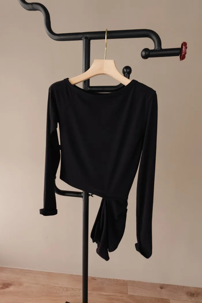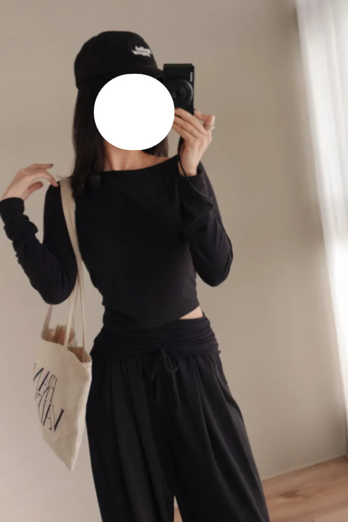 領口設計微微斜肩(寬度不露內衣) 與簍腰同一側