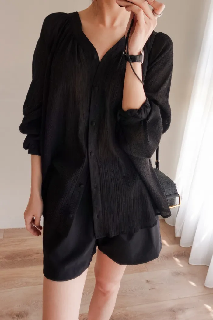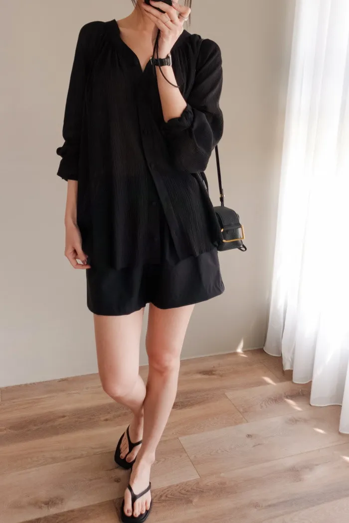 搭配上打摺與傘狀剪裁 是件極簡又精緻的棉衫