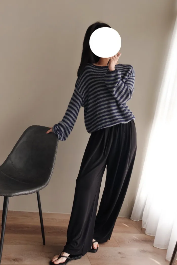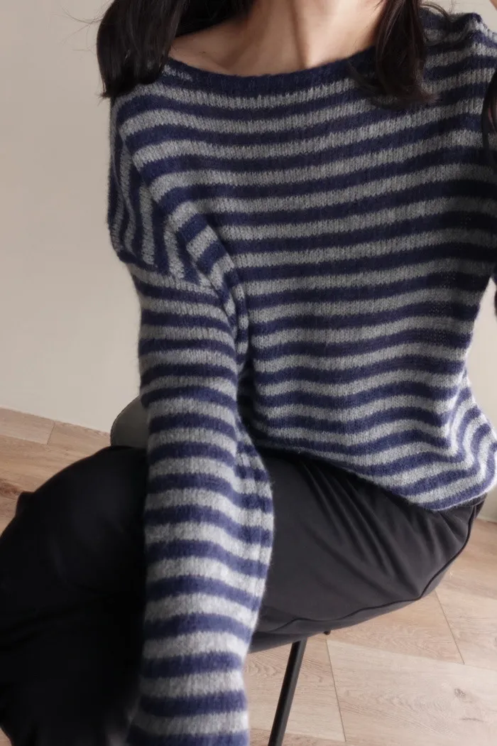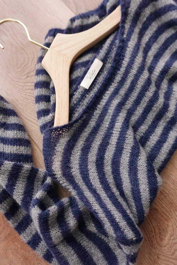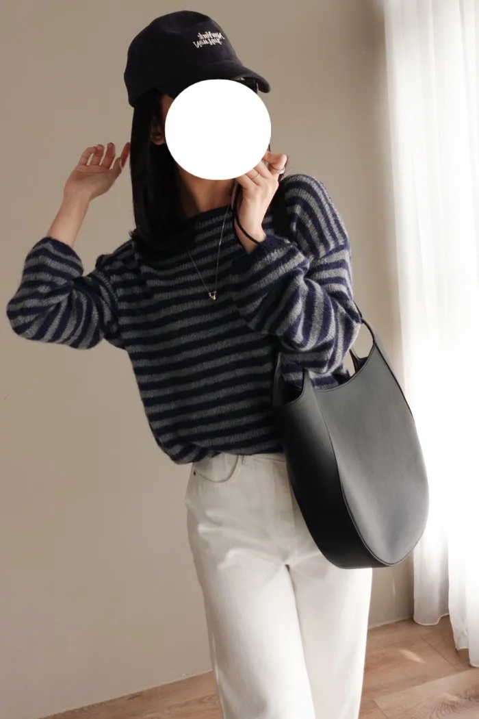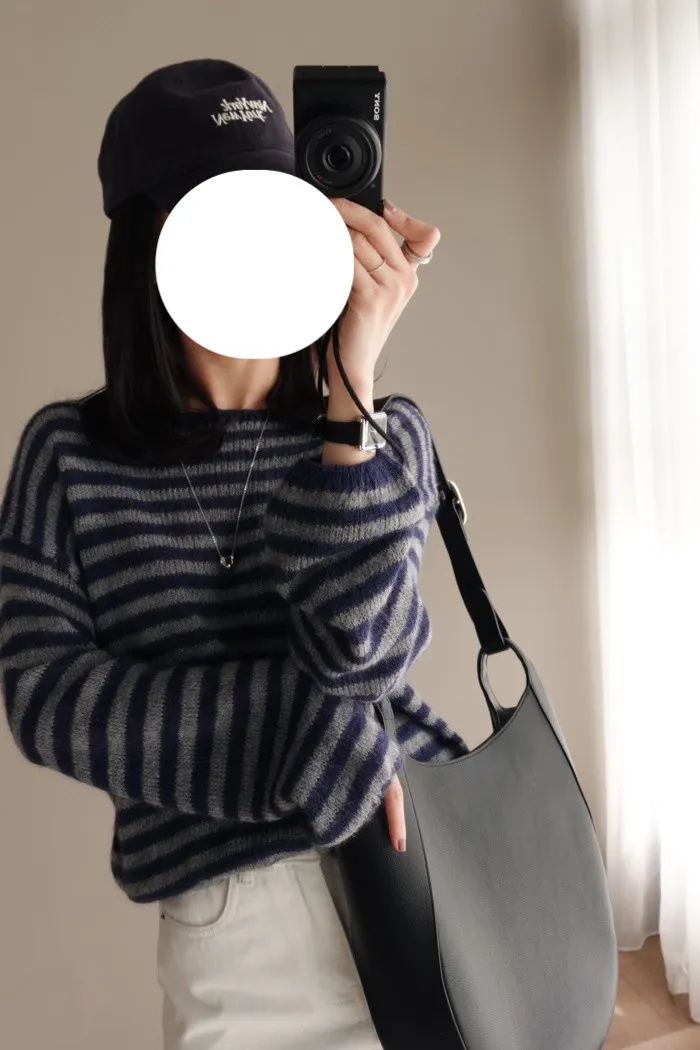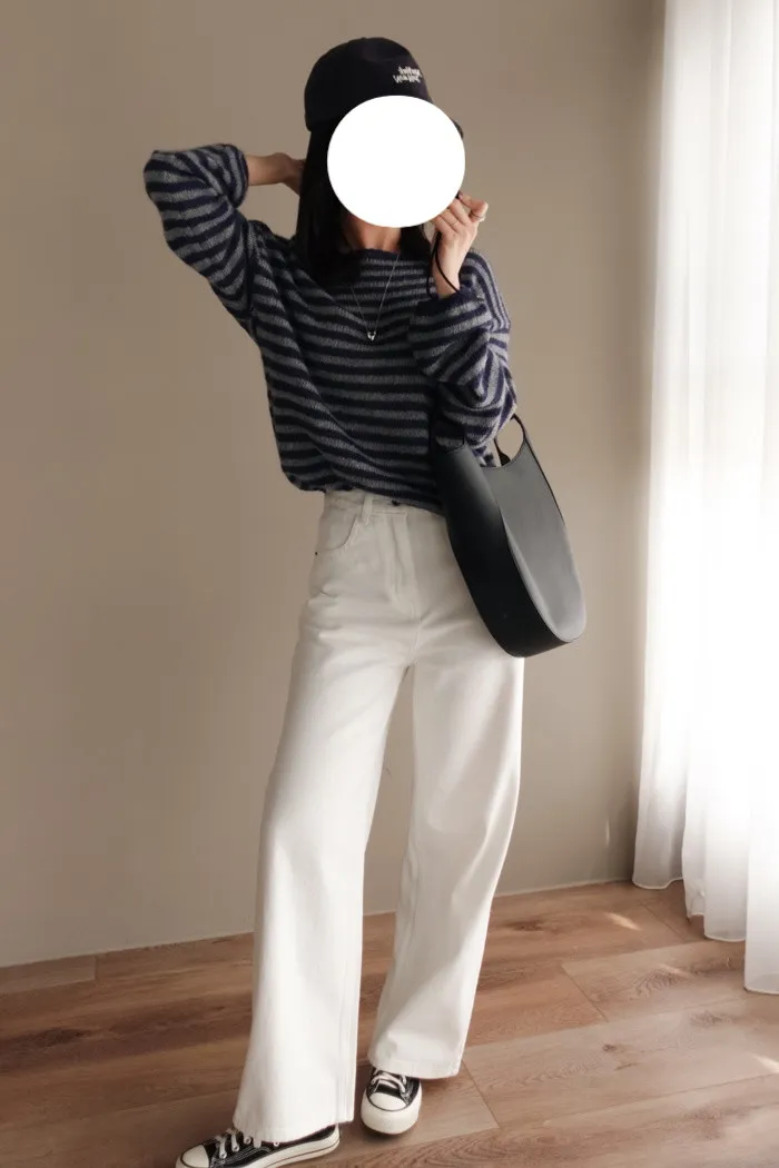 獨有的淡柔氣質配上灰藍條紋