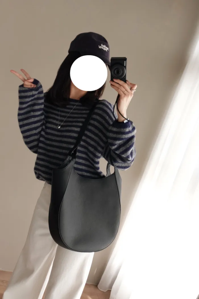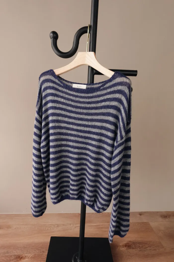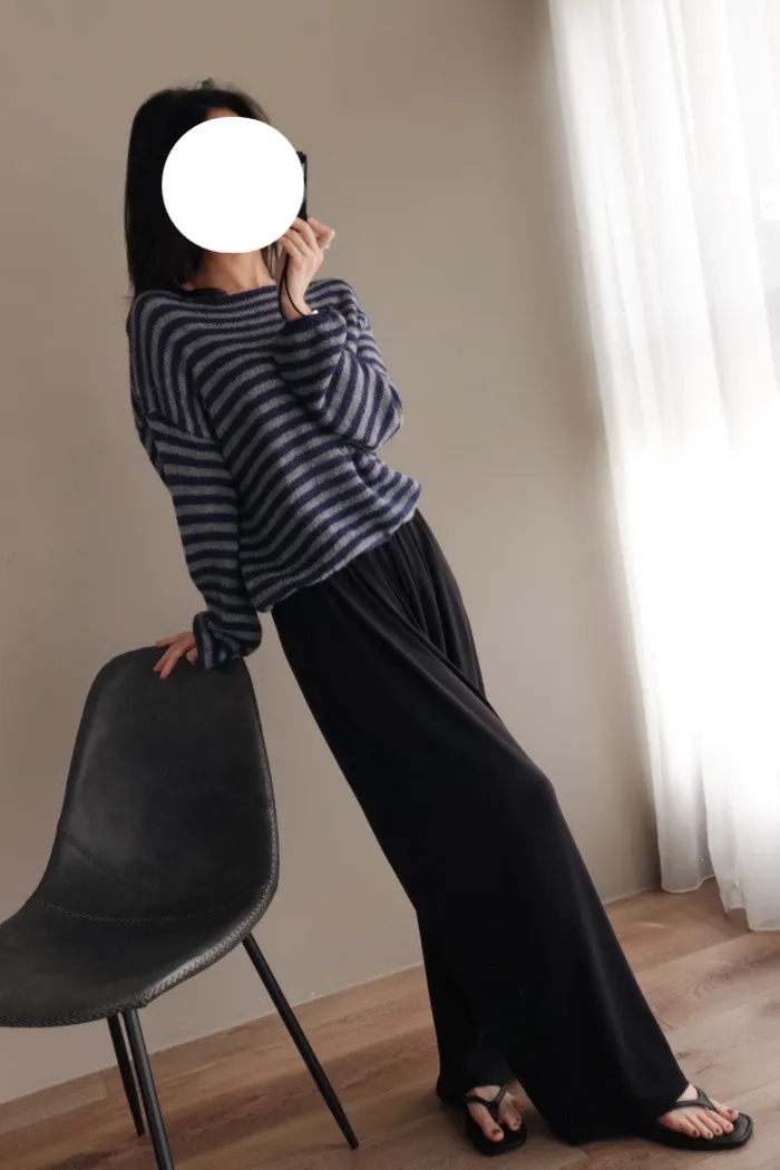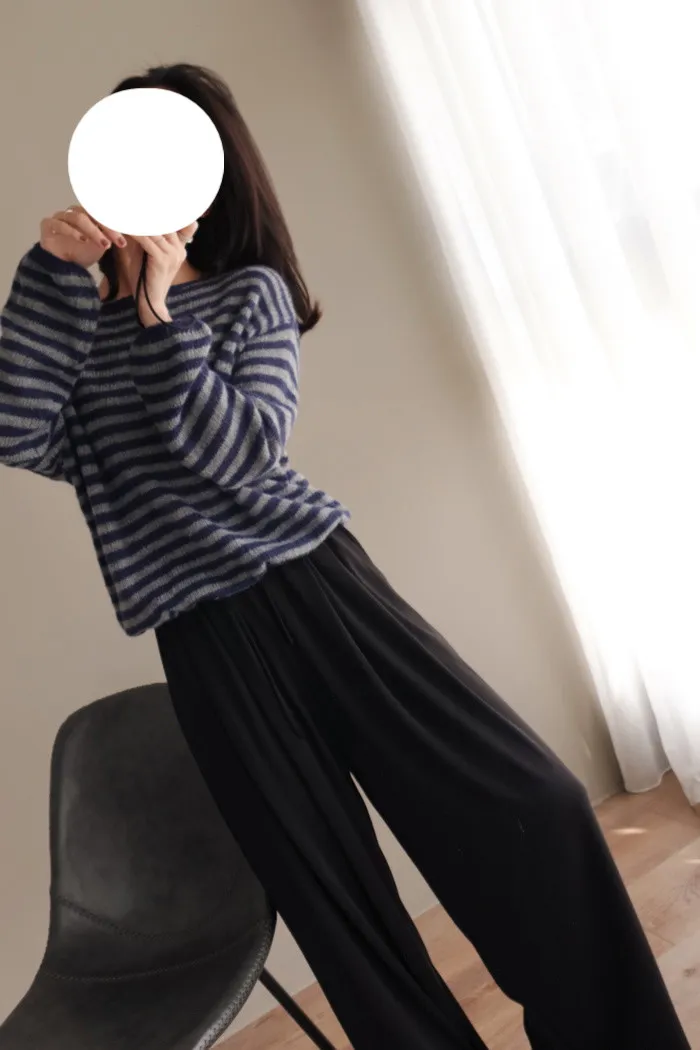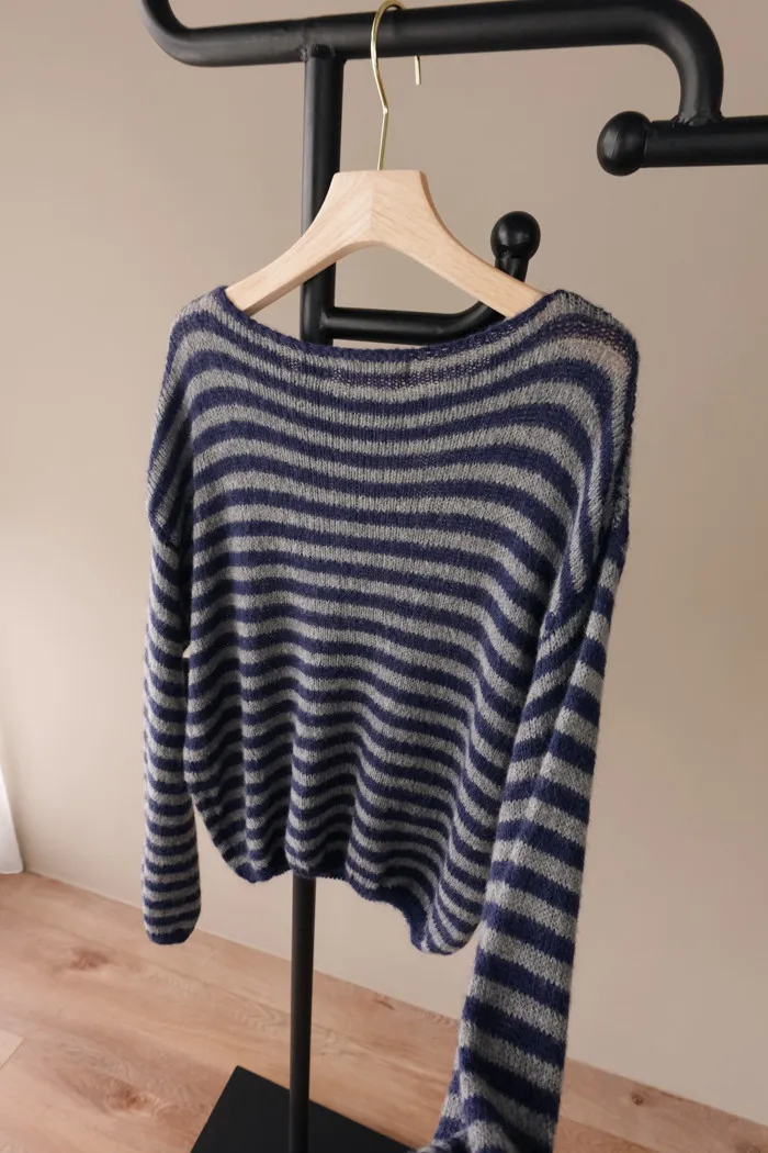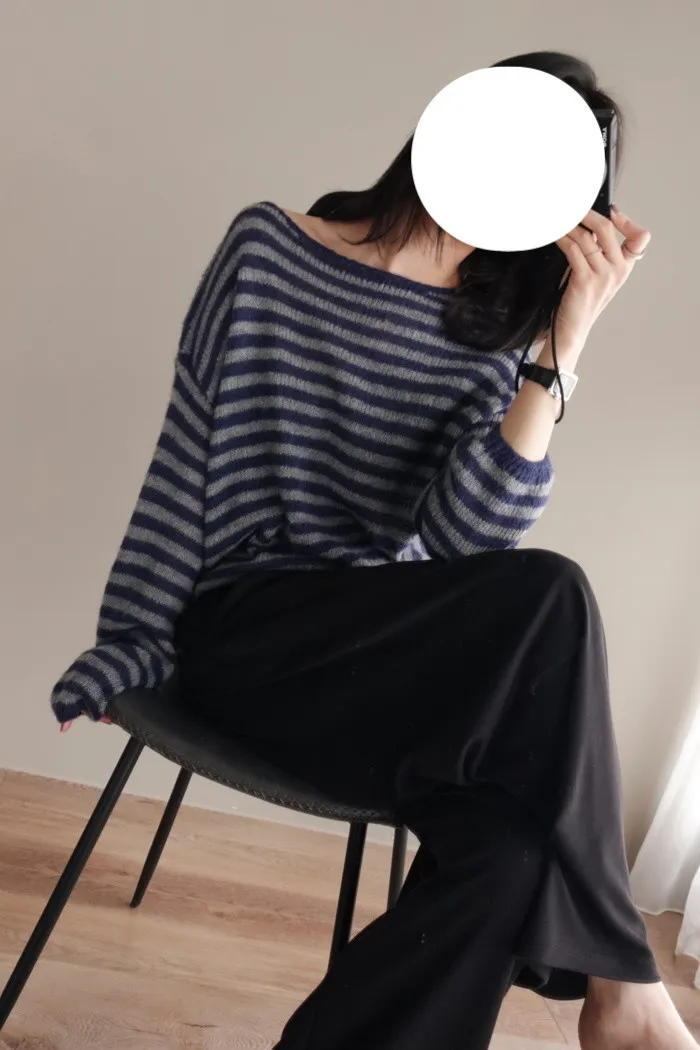 獨有的淡柔氣質配上灰藍條紋