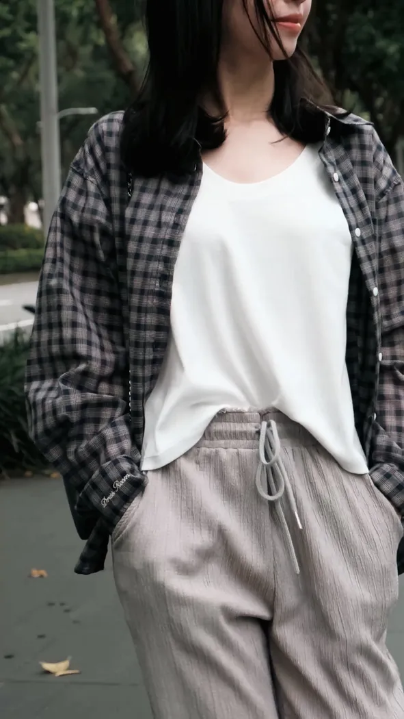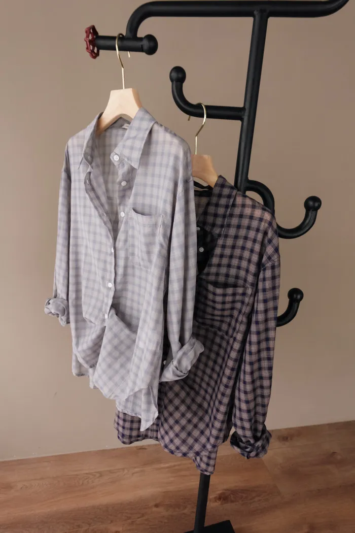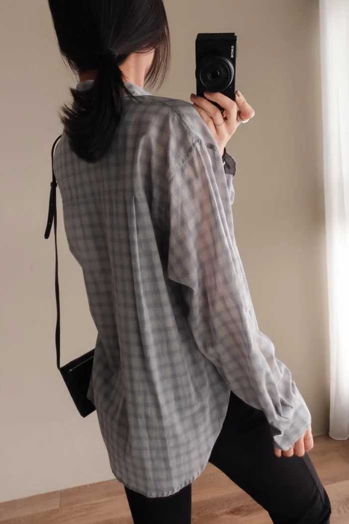 這款襯衫是少見的輕飄飄小格紋風格