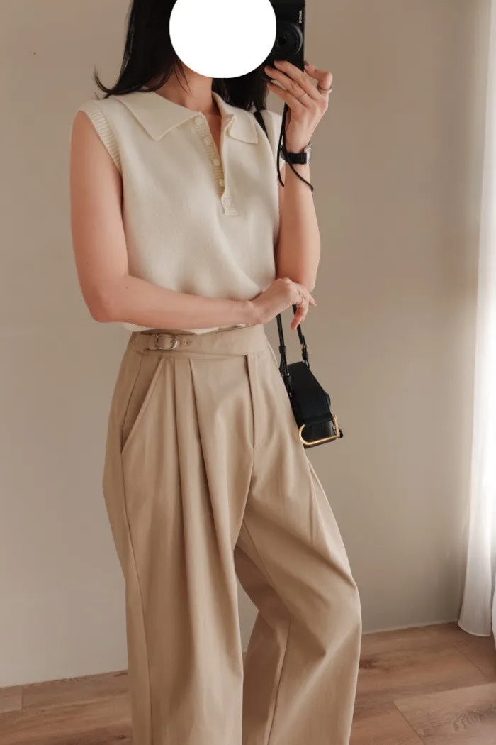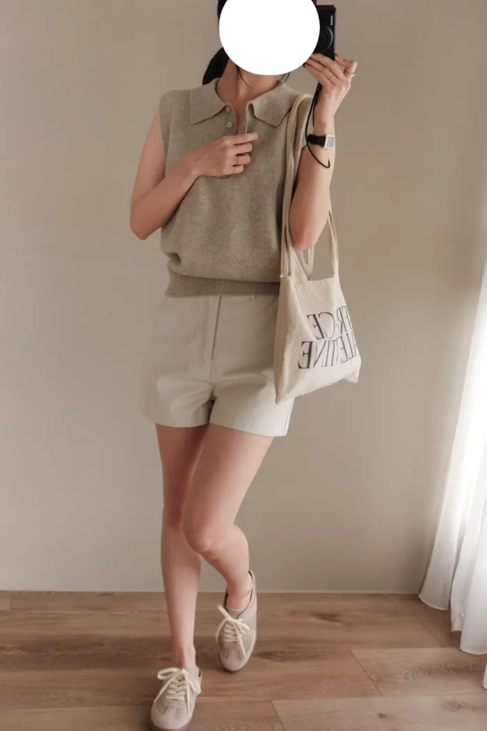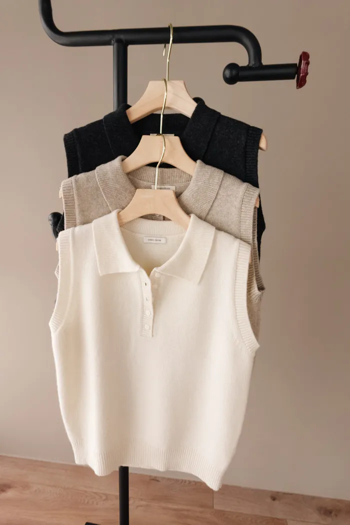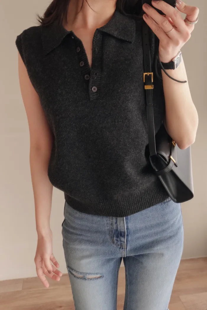 開釦子的襯衫背心款式有獨具一格的優雅感