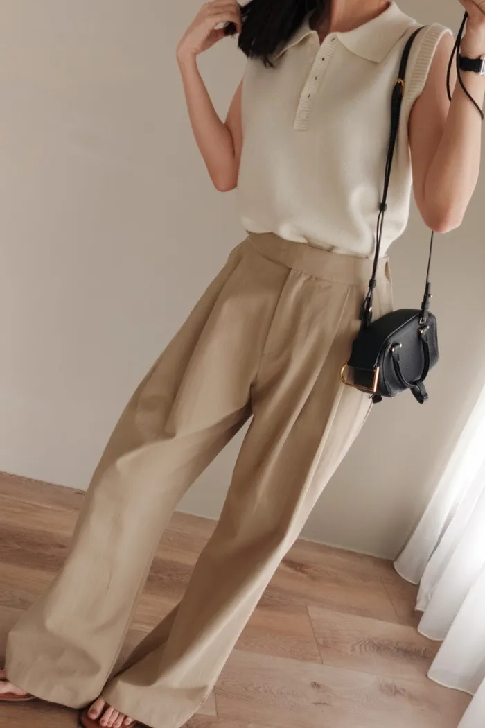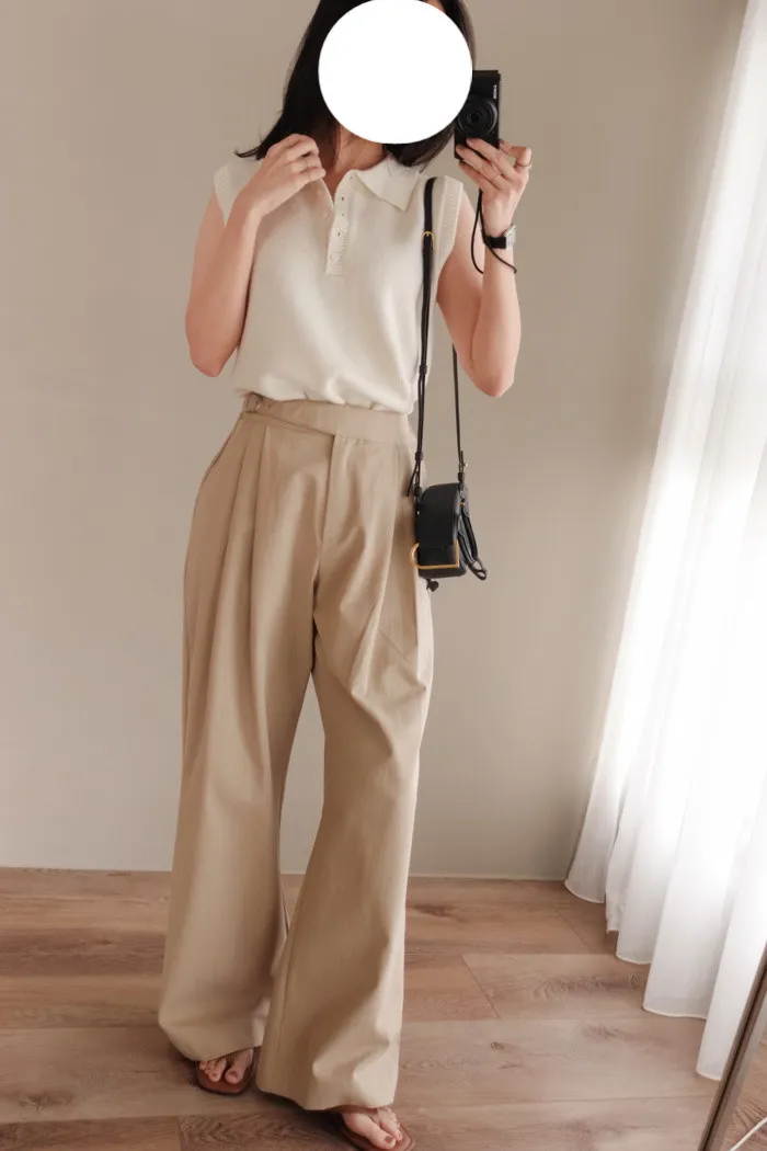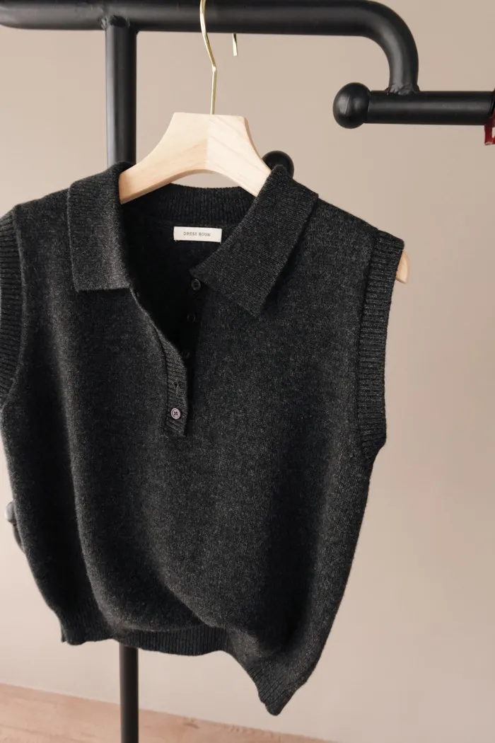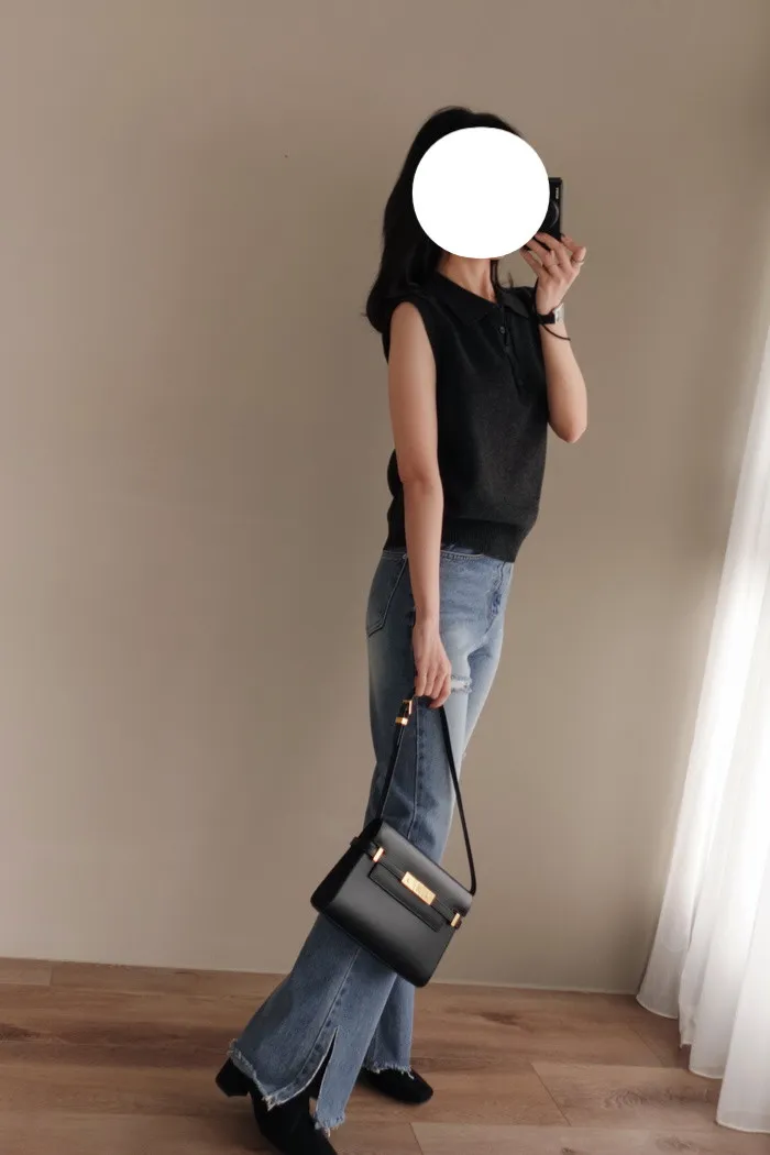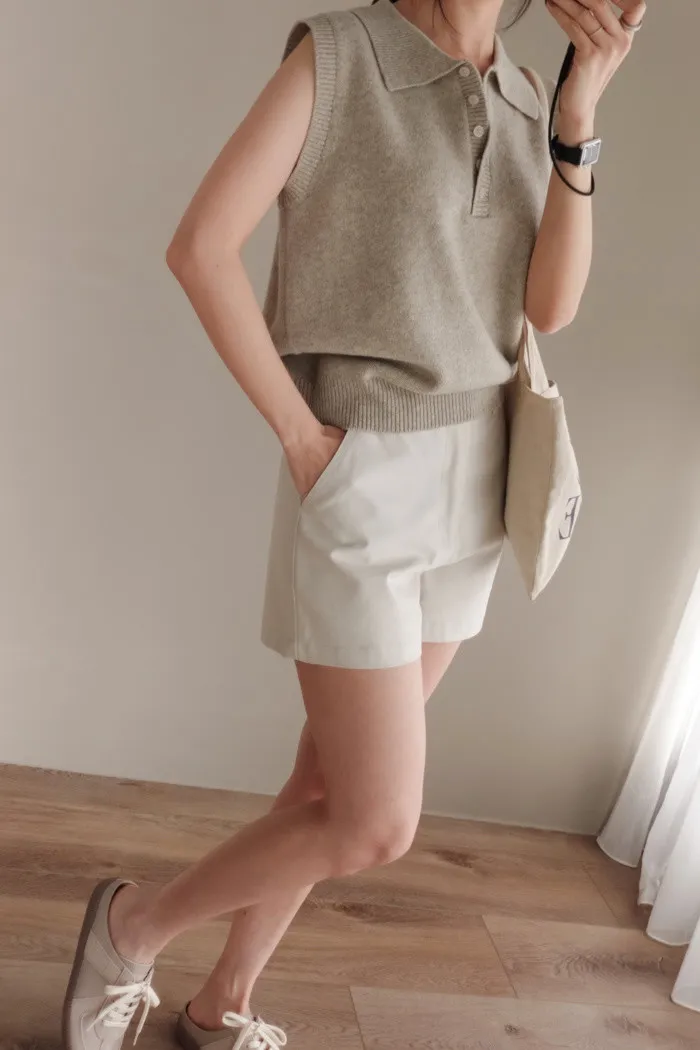 開釦子的襯衫背心款式有獨具一格的優雅感
