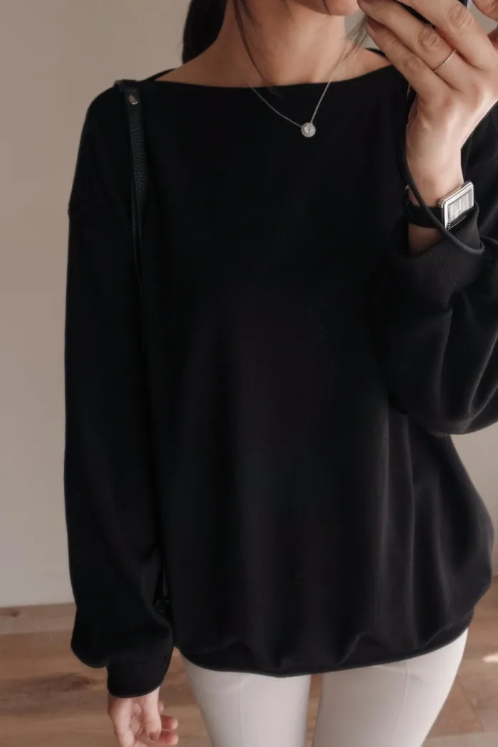 所以這件是不需要擔心露出內衣的船領棉T唷♥