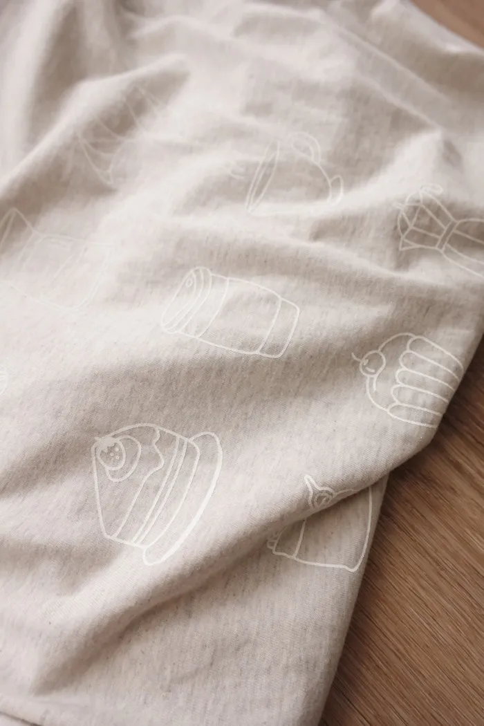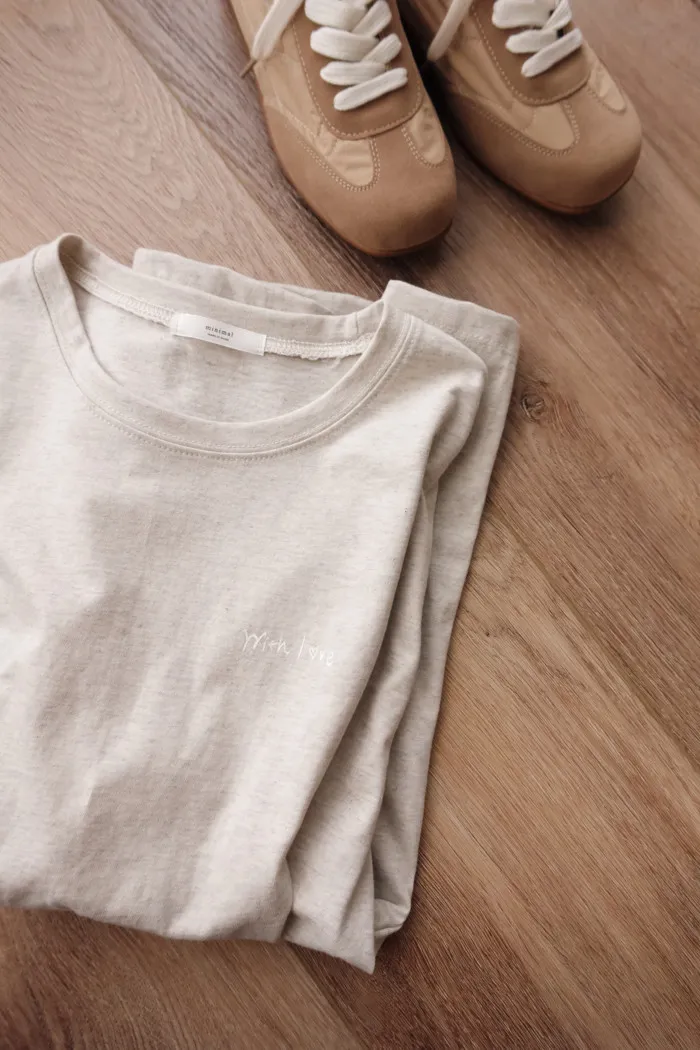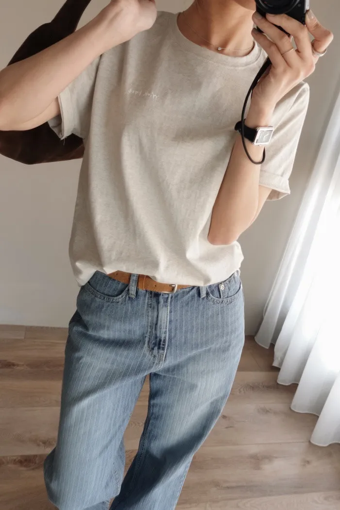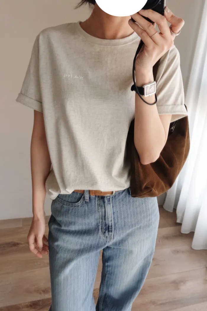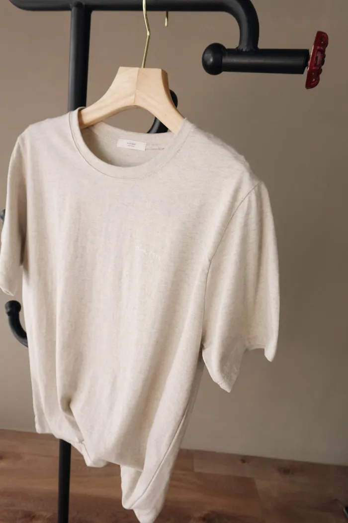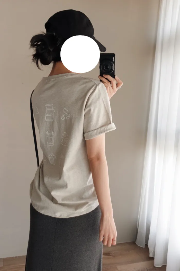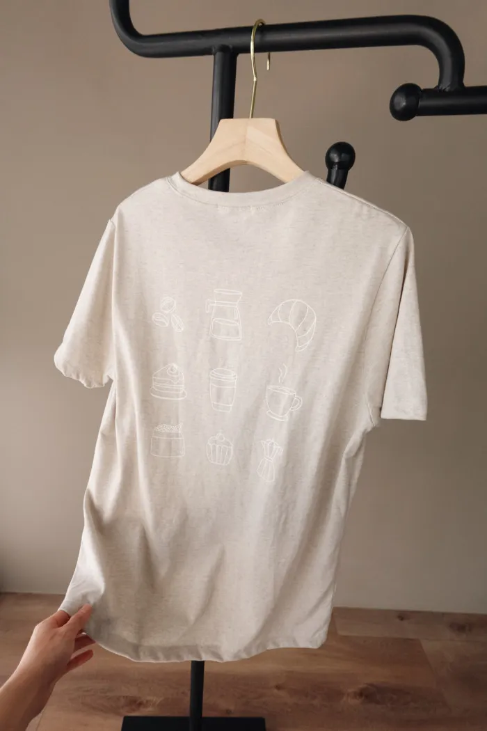 無論正面縫紉字體或者手繪圖都是隱藏在奶油色棉T內的淡淡色調