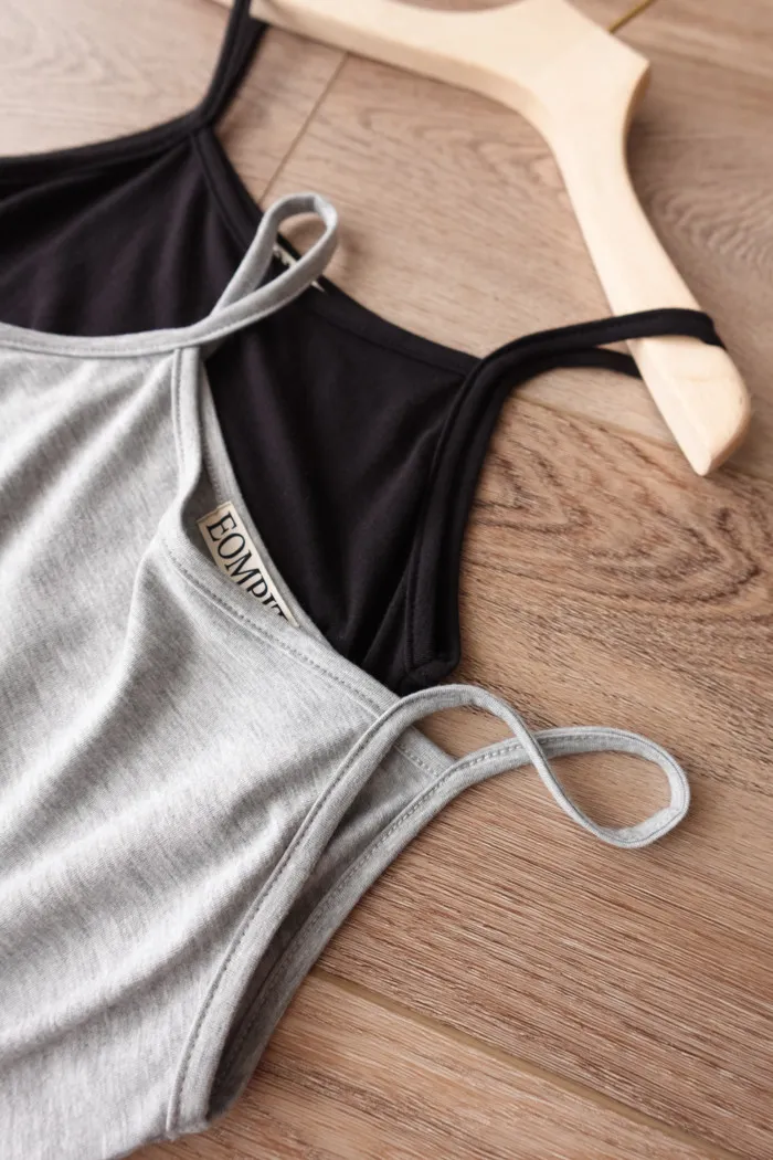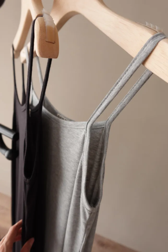 淡淡的方圓領劃過胸上 帶到細肩帶設計超級美又修飾肩型:")