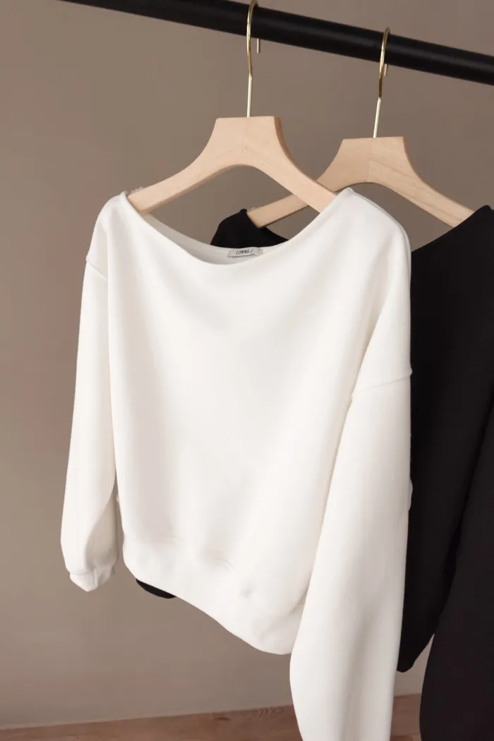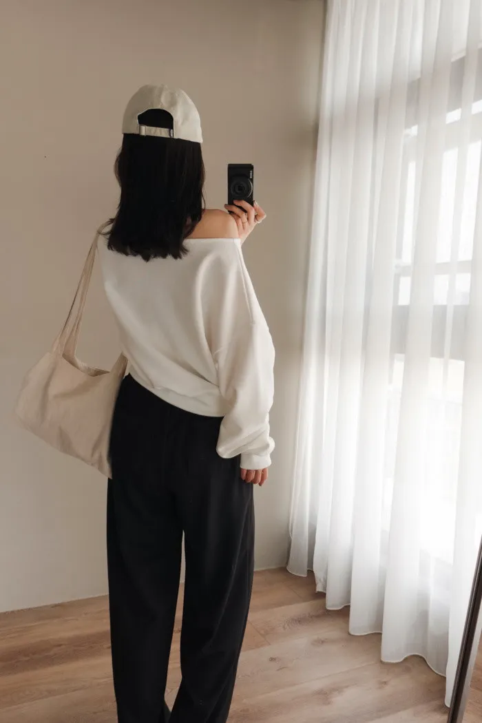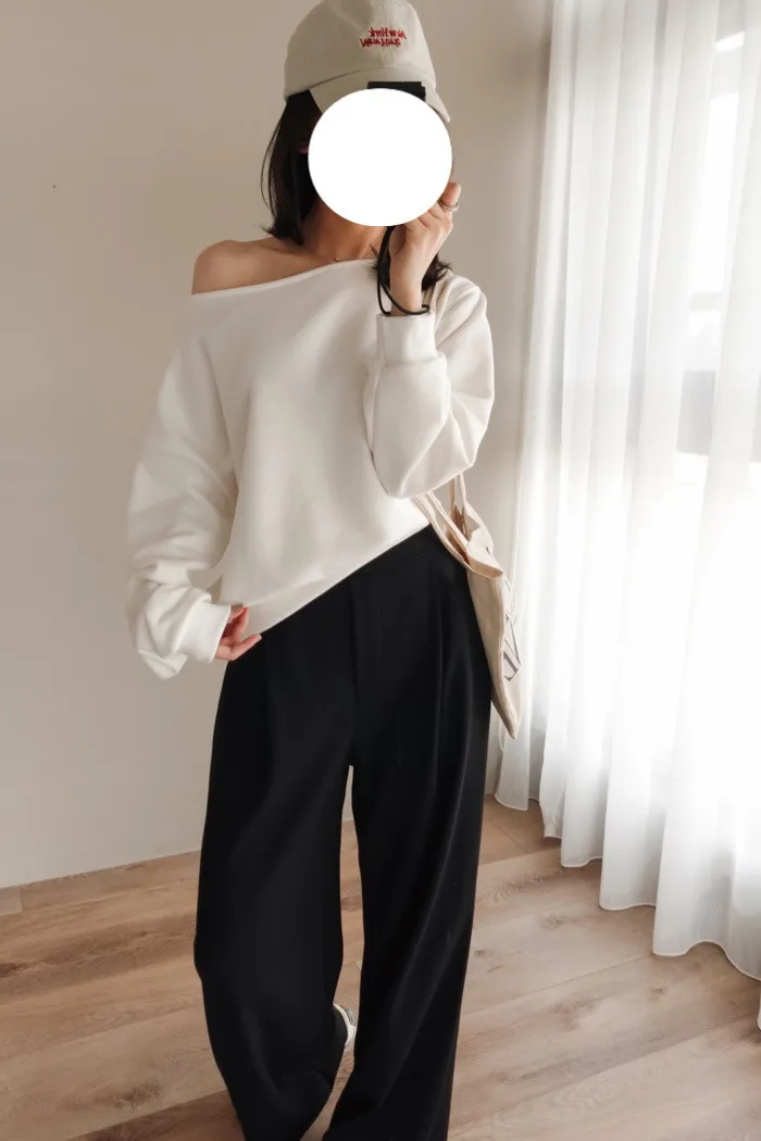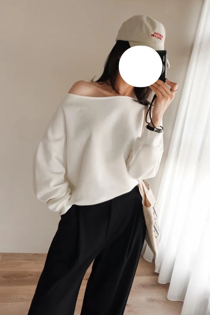 | 高級休閒風格-迷人美式斜肩素T |