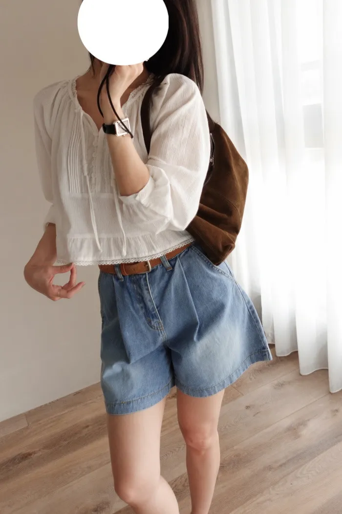 整體長度精準落在高腰位置修飾 底端還有漂亮蕾絲做點綴