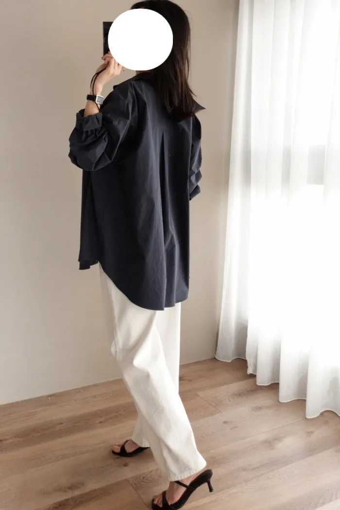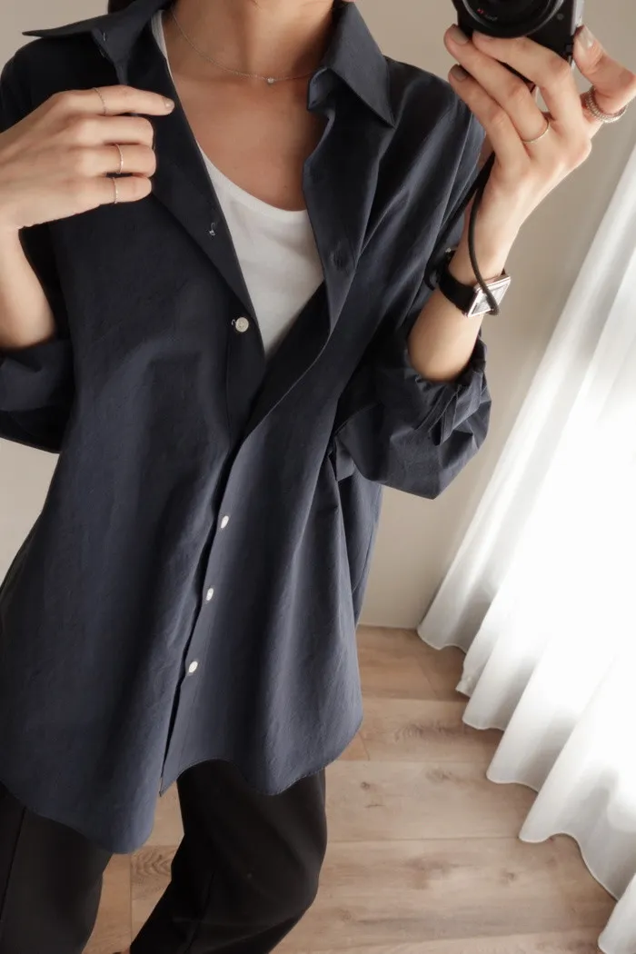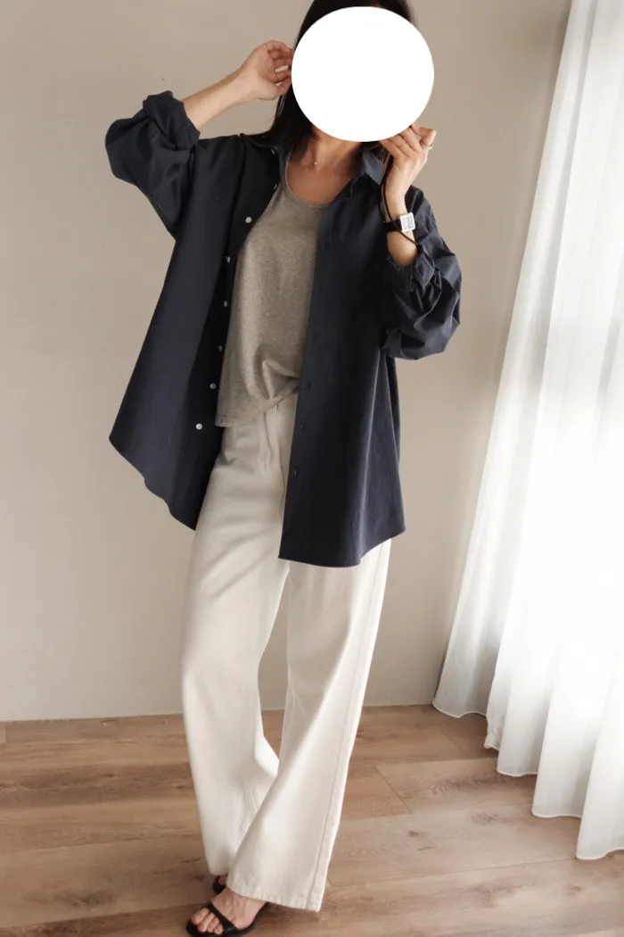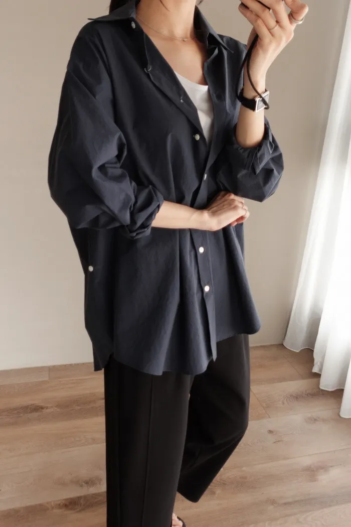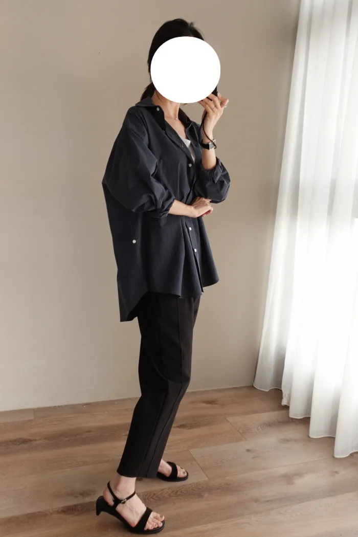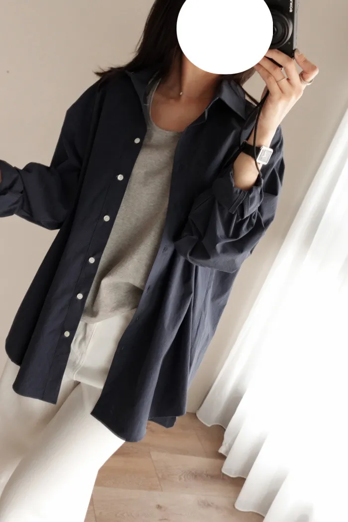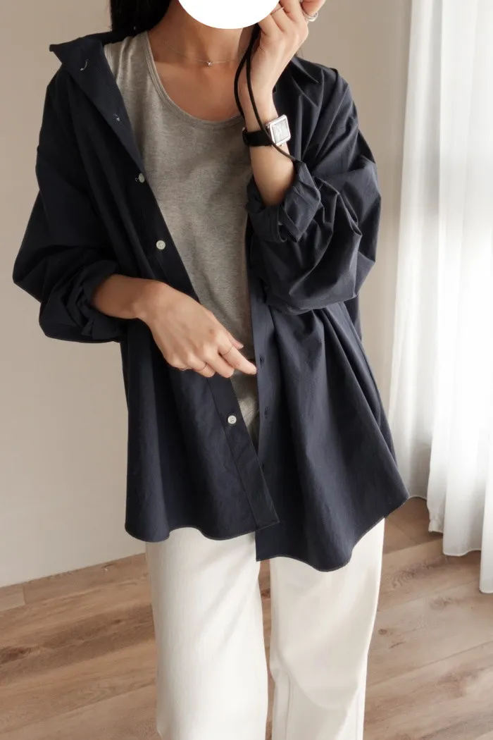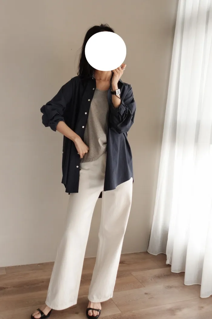 製成了這件極薄極深~非常顯白的大襯衫♥