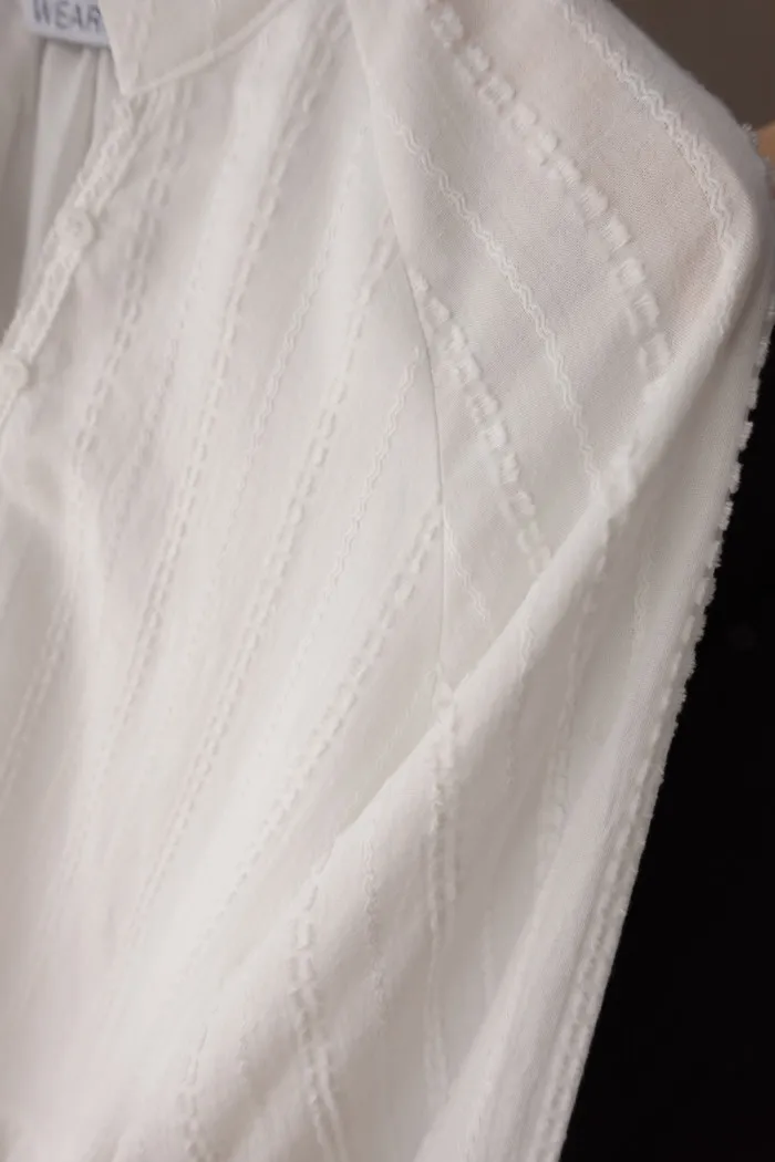 洋裝上的紋理很美~~有小小的波浪痕跡與立體勾紗小格子組成