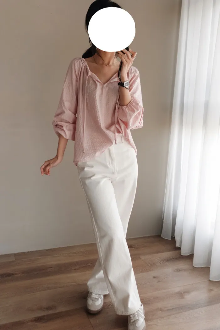配合小V領開岔修飾臉型外穿著感更加清新好看