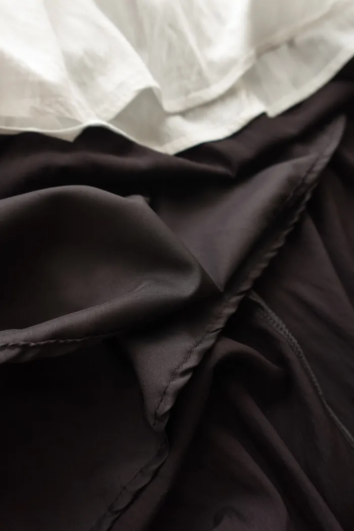 裙子部分設計了有濃郁度的內裡加上外表的擰面裙面效果