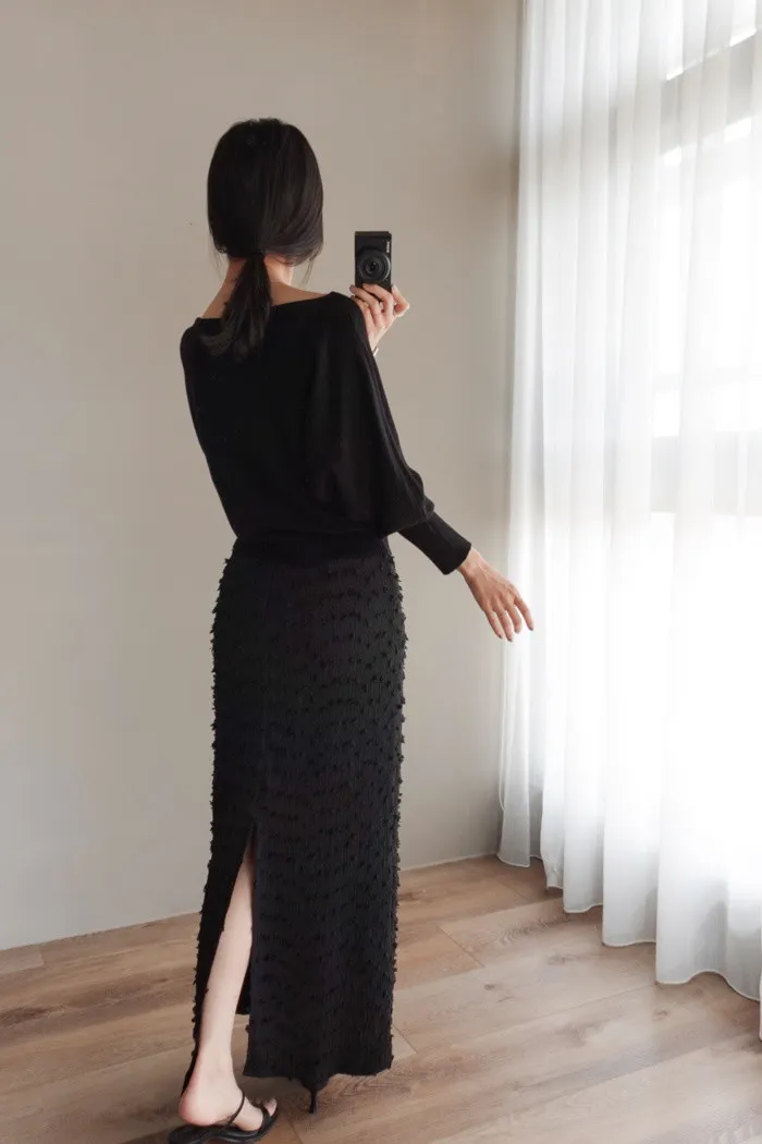 從肩膀開始的連袖設計充滿慵懶氛圍