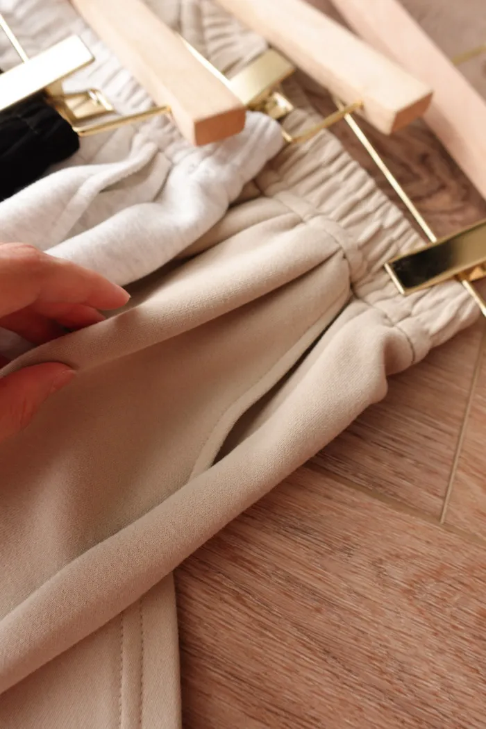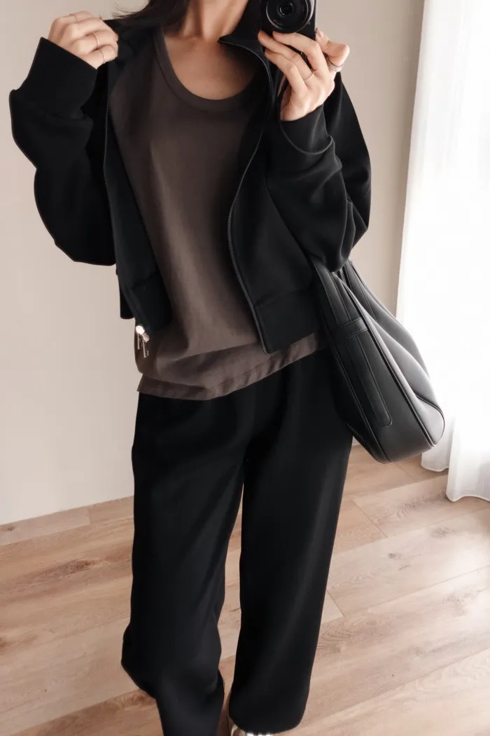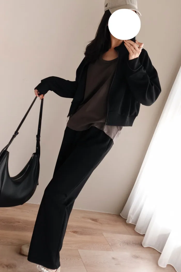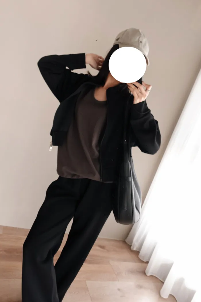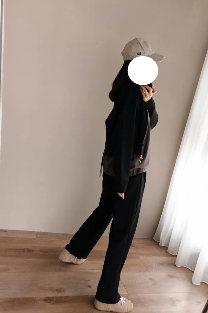 因為上衣有鬆度 因此下身反而是不會太寬大的棉質寬褲