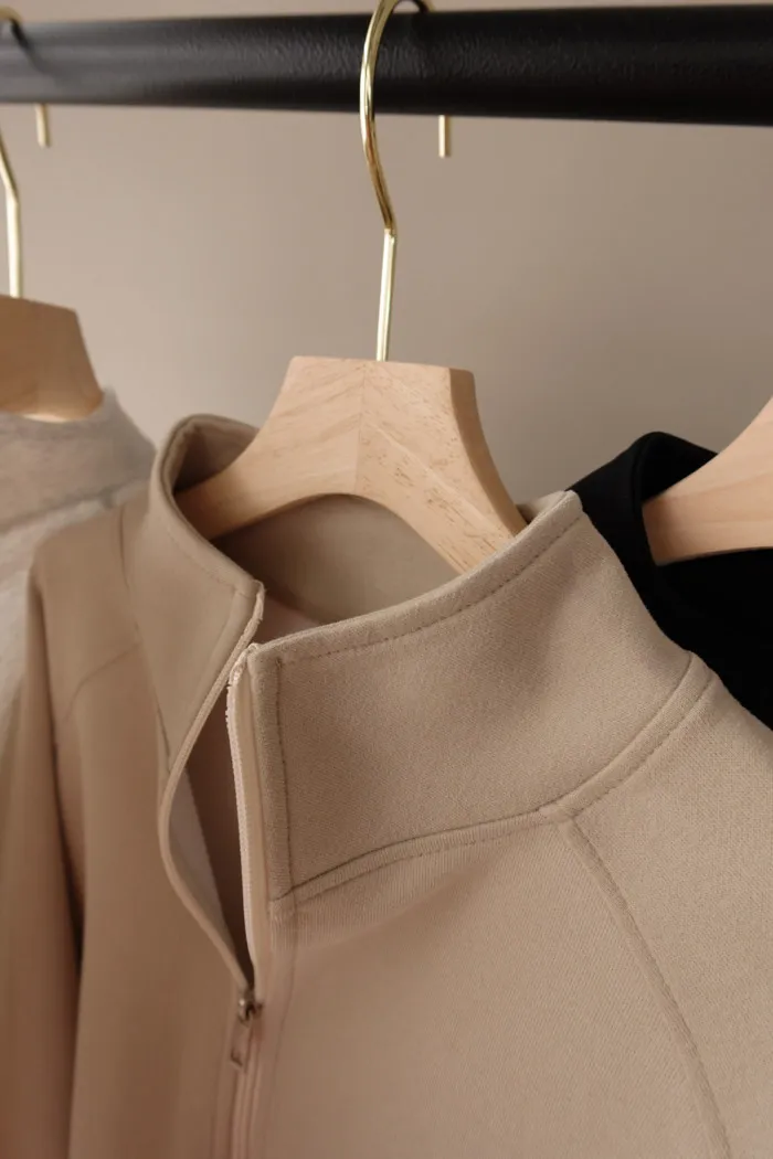 它的上衣是雙拉鍊設計的 可以成為休閒立領上衣