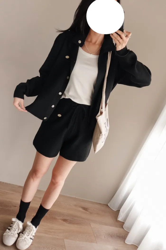 黑色款式成熟質感最好 而貝殼釦設計因為底色深的關係更能讓釦子光澤跳出來